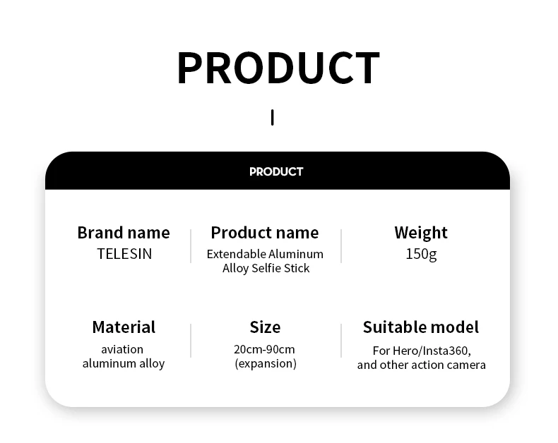 TELESIN 0.9M Aluminum Alloy Extendable Monopod Handheld Selfie Stick for GoPro Hero 12 11 10 9 8 7 6 5 Insta360 Osmo Action SJCAM EKEN