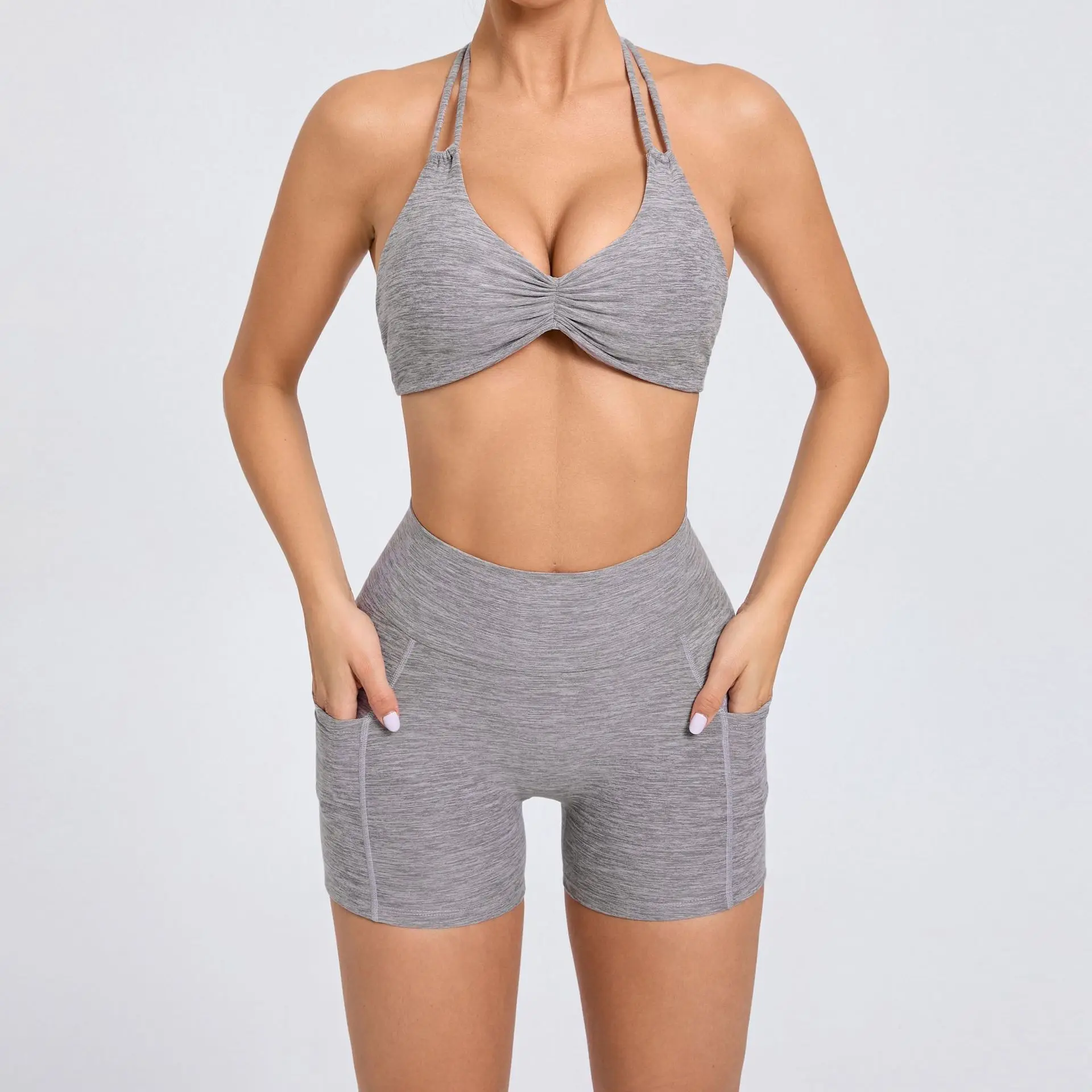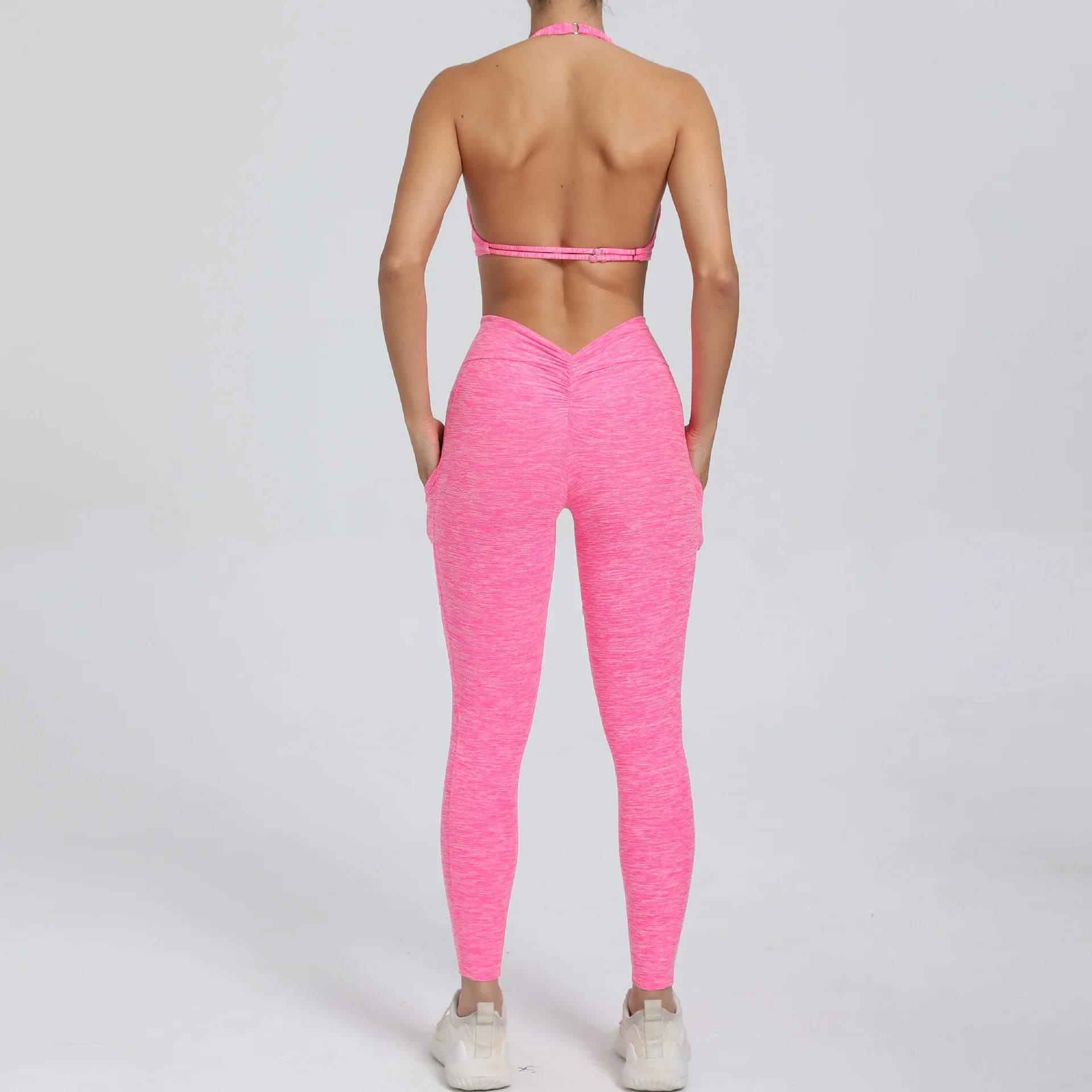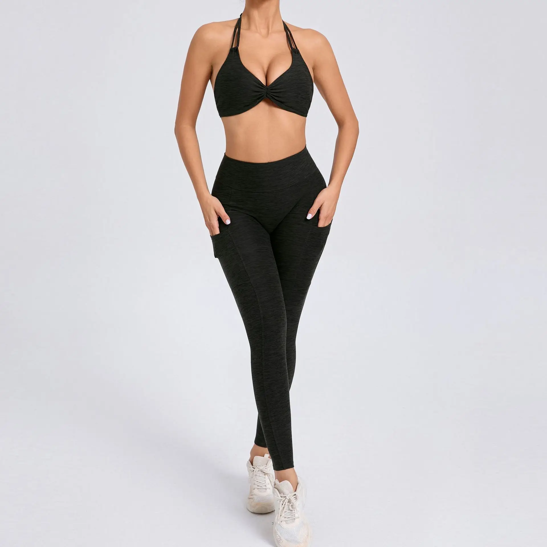 1/2 Pcs Sports Bra Sets for Women Workout Clothing Pocket Gym Leggings High Waist Fitness Outfit