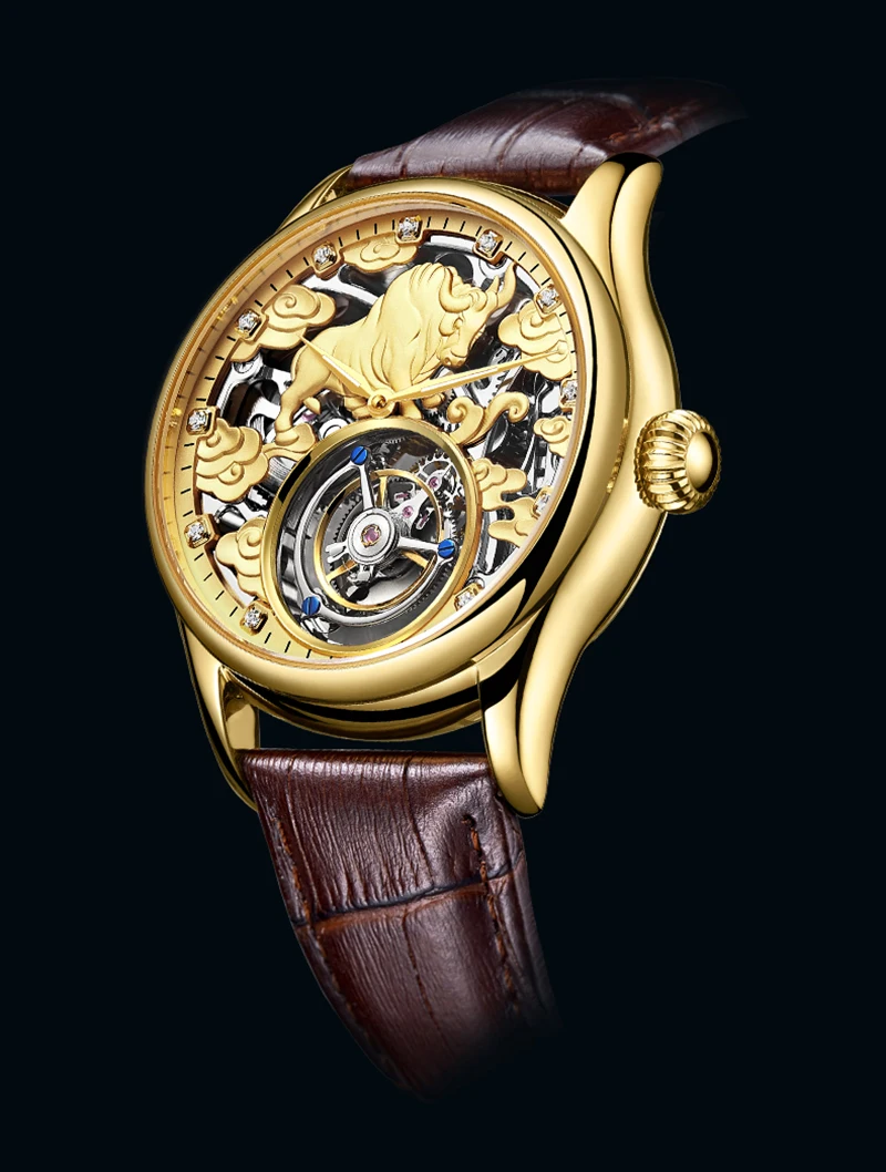 AESOP 100% Real Tourbillon Skeleton Watch For Men Top Brand Luxury Mechanical Watches Waterproof Wristwatches 2022 Zodiac Cattle