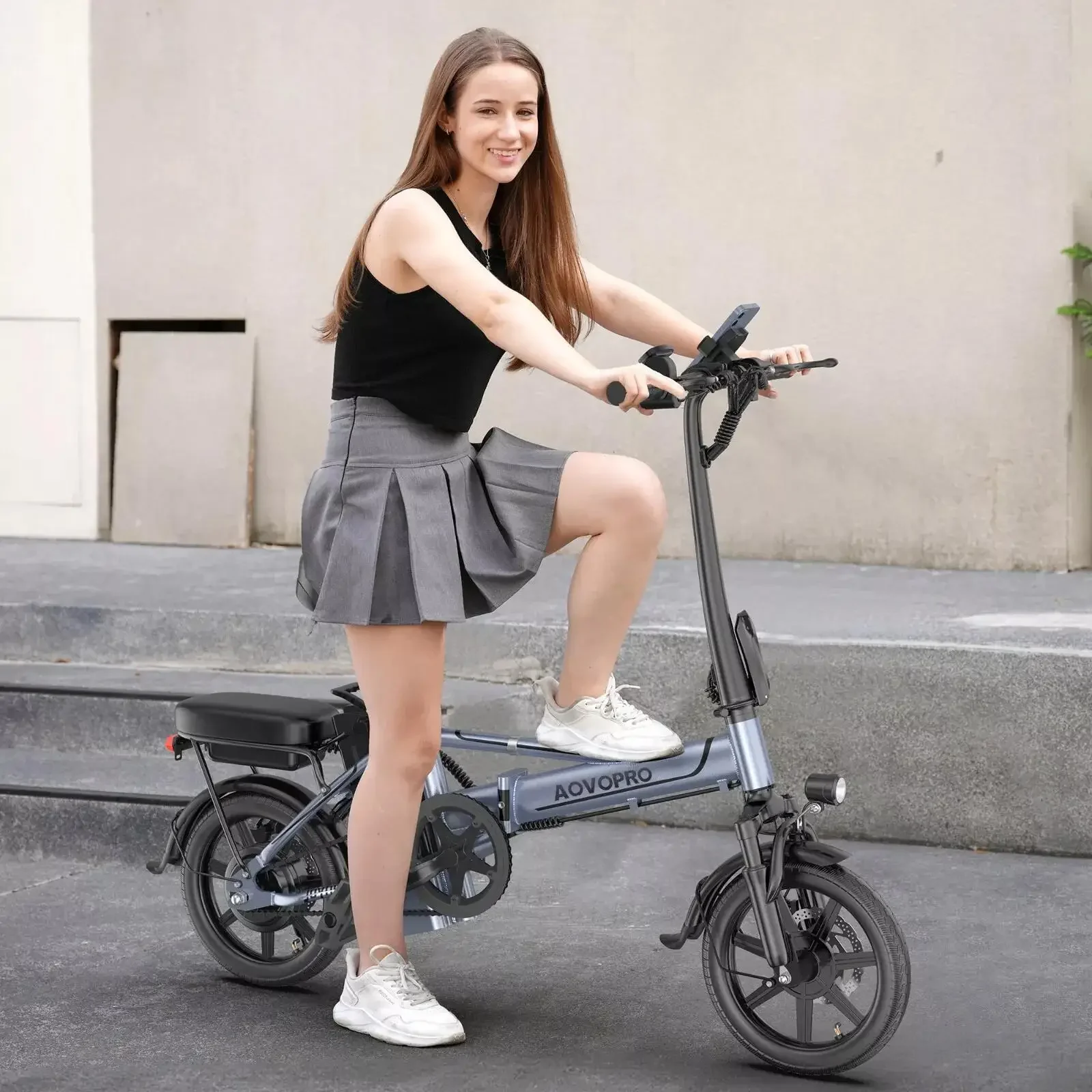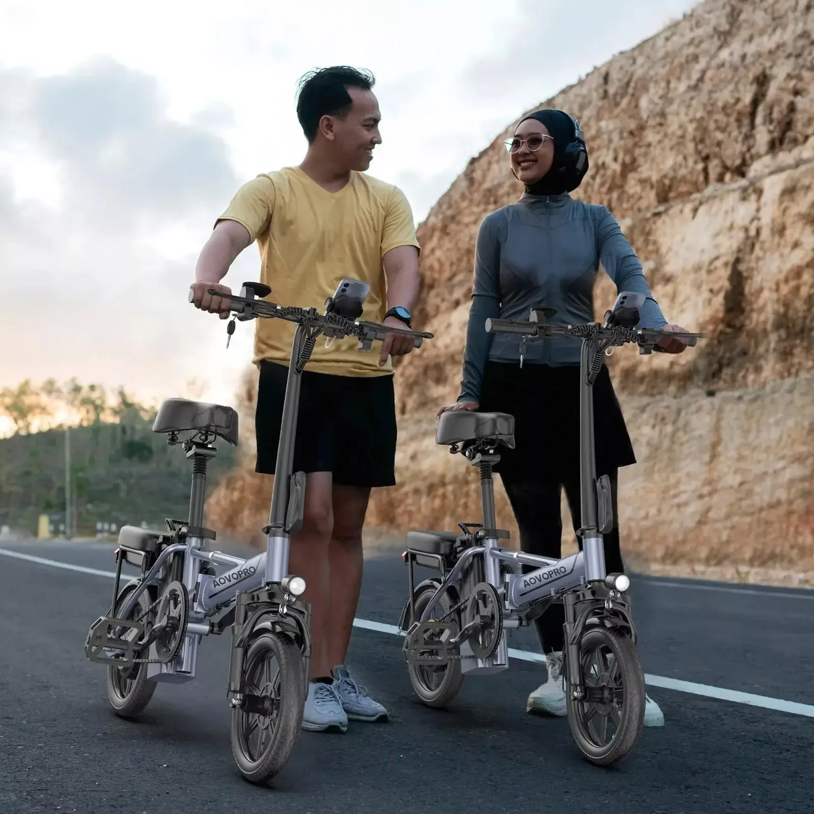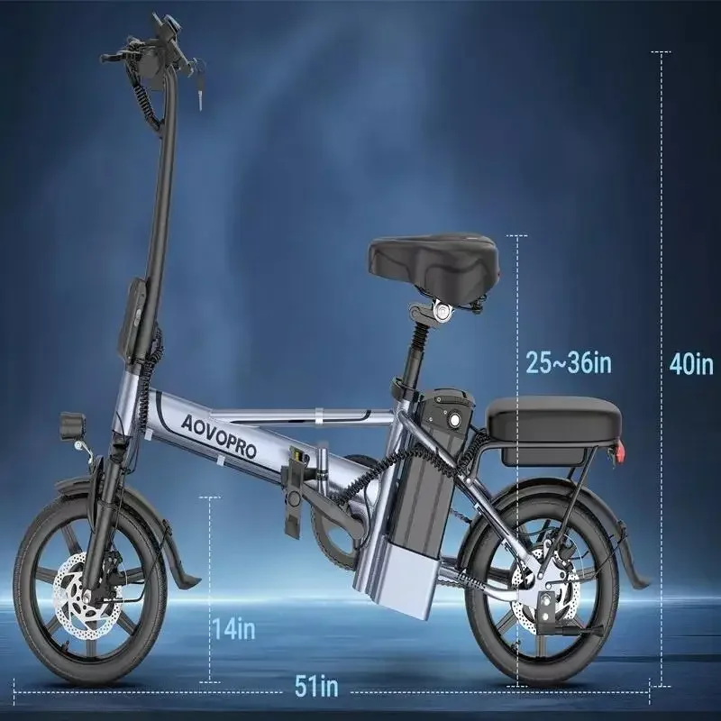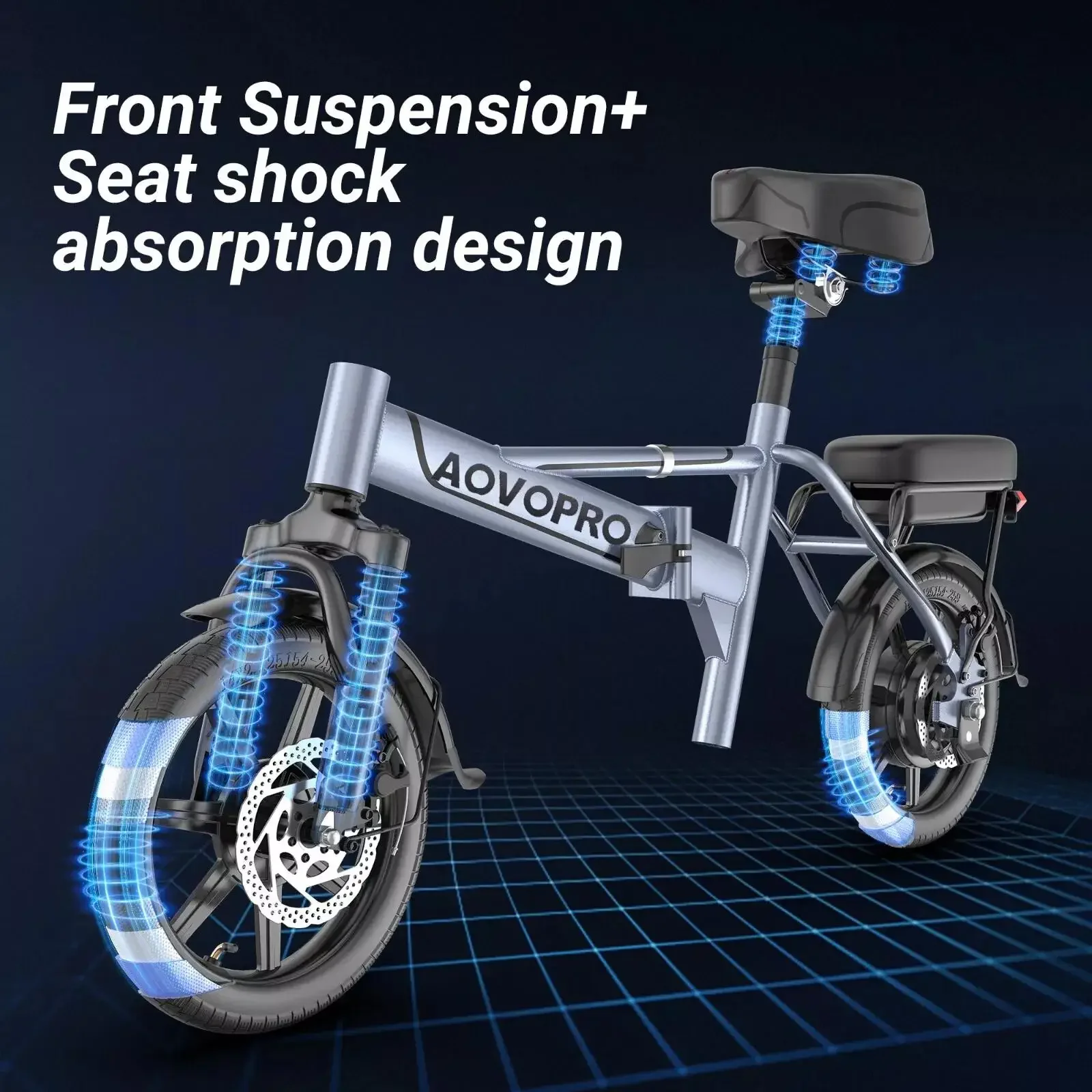 Comfortable Riding Experience: AOVOPRO EB60 electric bike features adjustable height seats that meet everyone's riding needs, dual disc brakes, front hydraulic shock absorbers, seat spring shock absorbers, and 14 inch inflatable tires, greatly enhancing riding safety and comfort