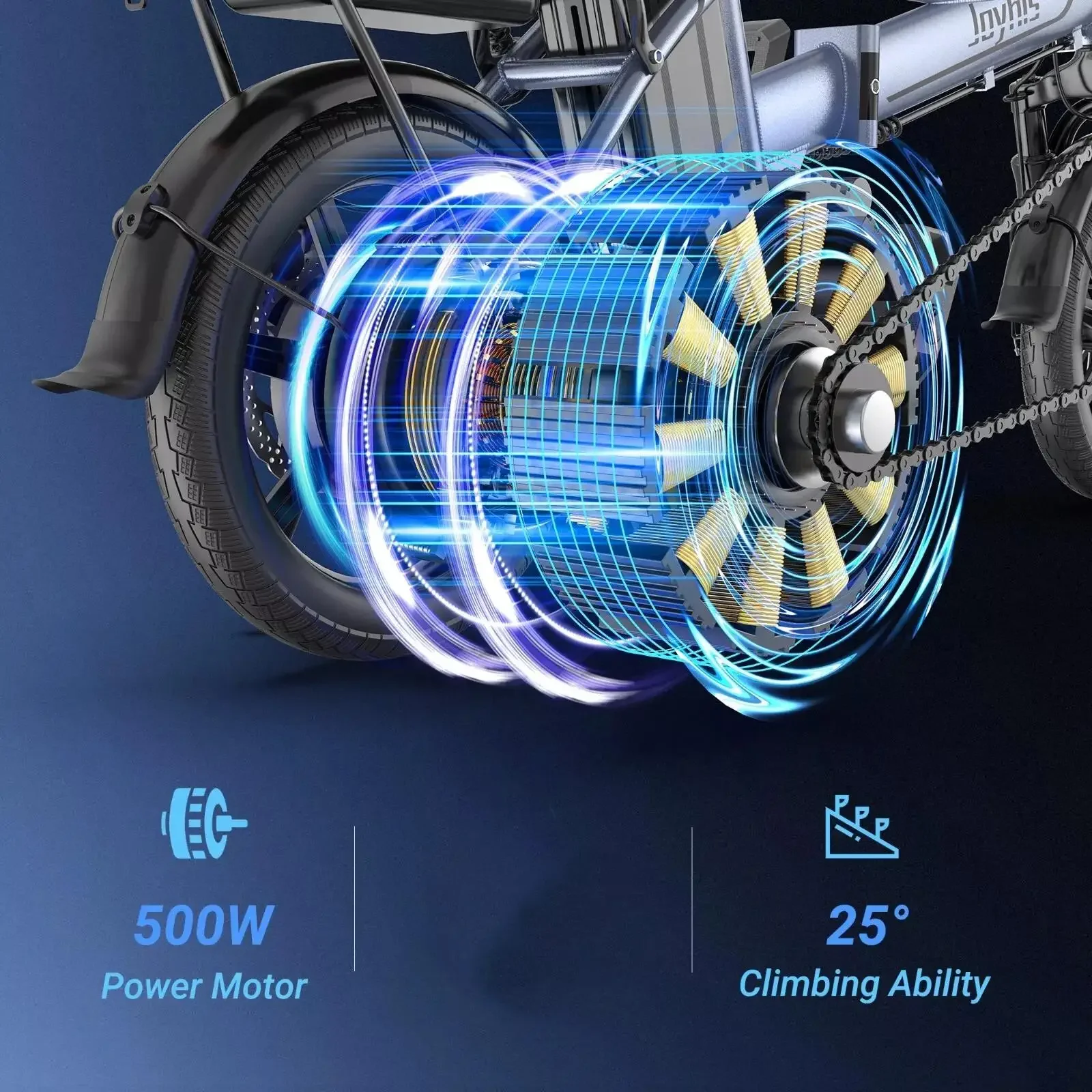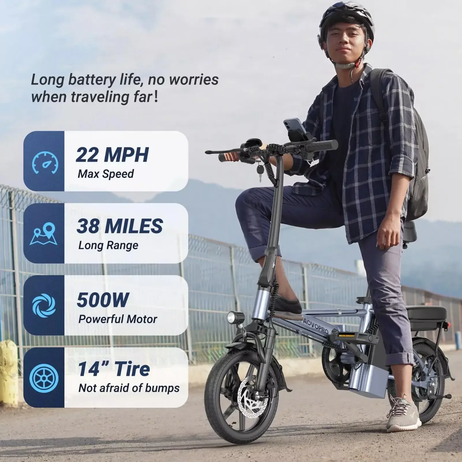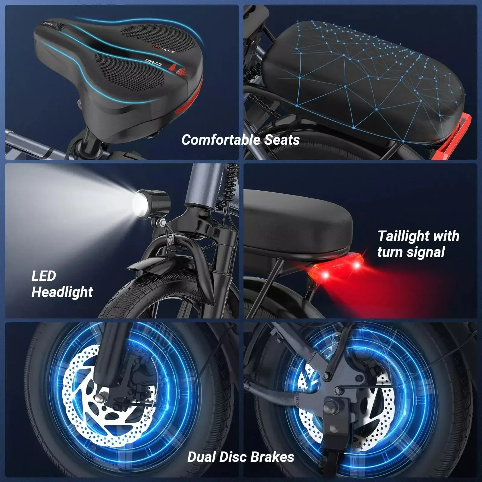 14Inch EB60 Foldable Ebike 500W 48V 10.4AH Electric Bicycle 22MPH 28Miles Long Range with Two Seats for Adult