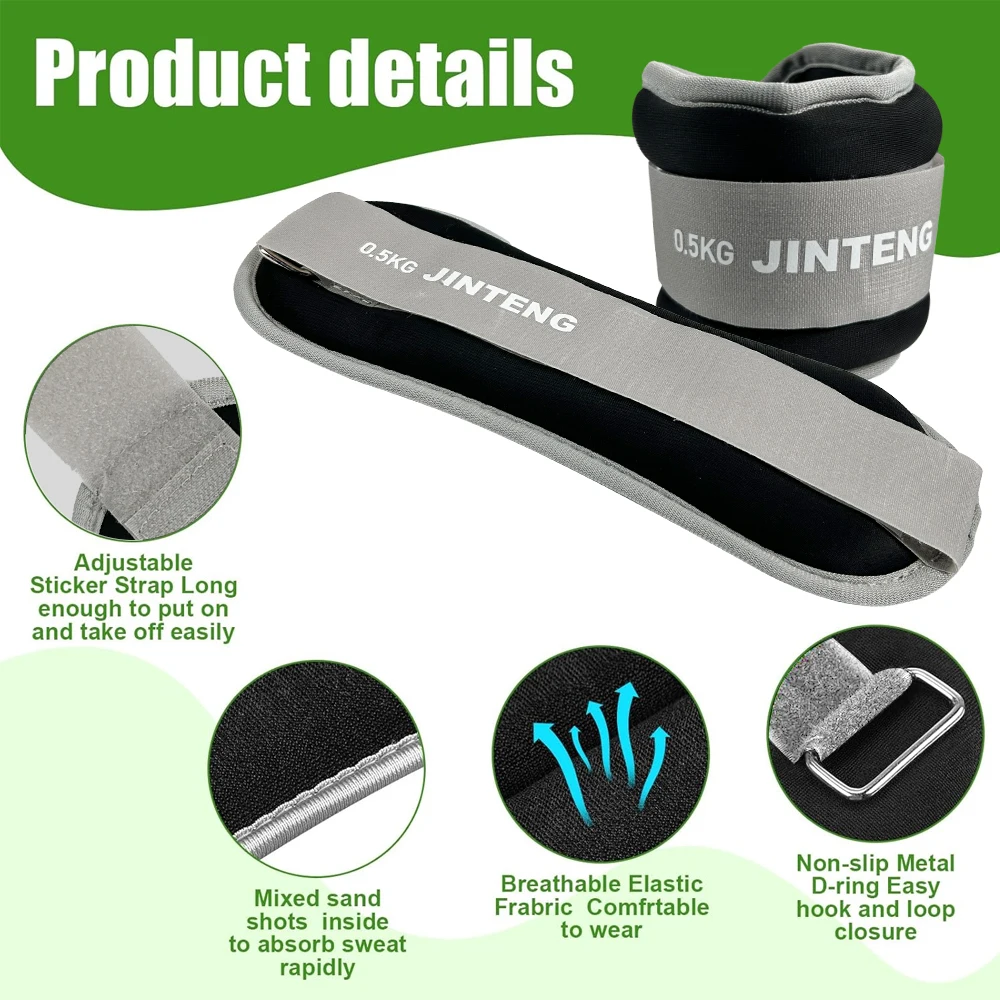 1. Choices: ankle weights come in different weight levels for you to choose from. 1kg/2.2LBS(0.5kg each),2kg/4.4LBS(1kg each), 3kg/6.6LBS (1.5kg each).