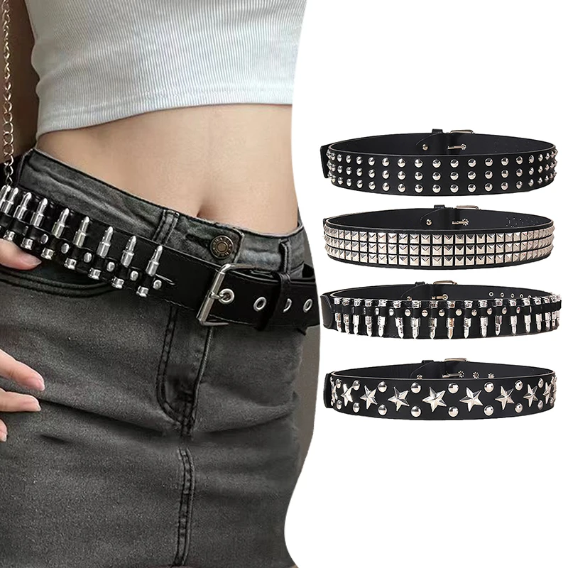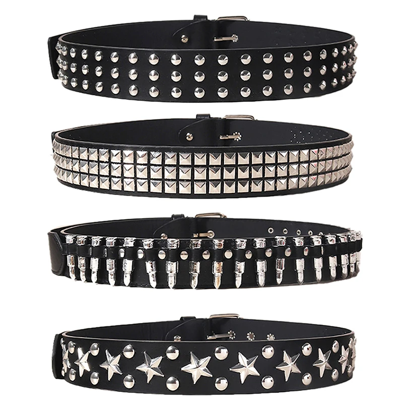 1Pc Rivet Hollow Bullet Decoration Belt Fashion Leather Studded Goth Rock Wild Adjustable Women Punk Black Belt