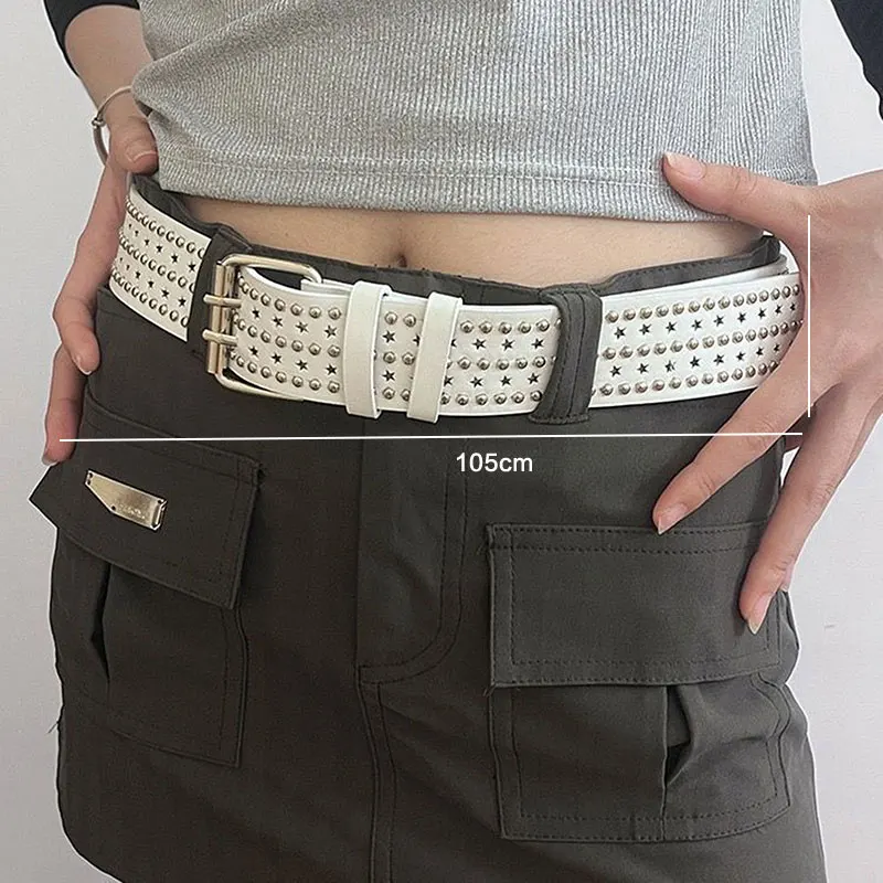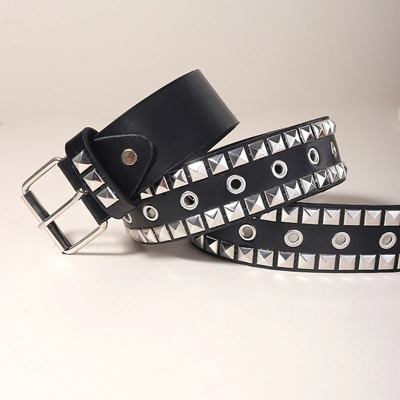 Rivet Hollow Bullet Decoration Belt Fashion Leather Studded Goth Rock Wild Adjustable Women Punk Black Belt