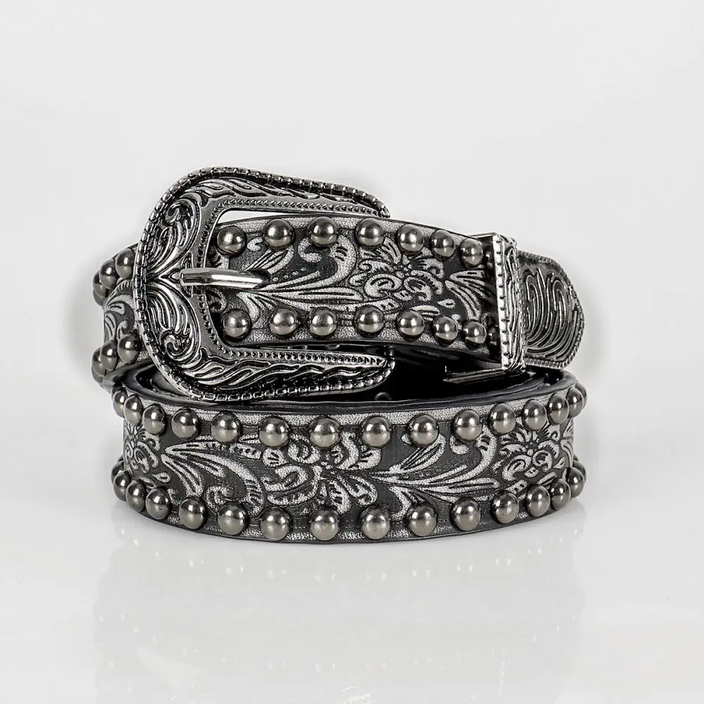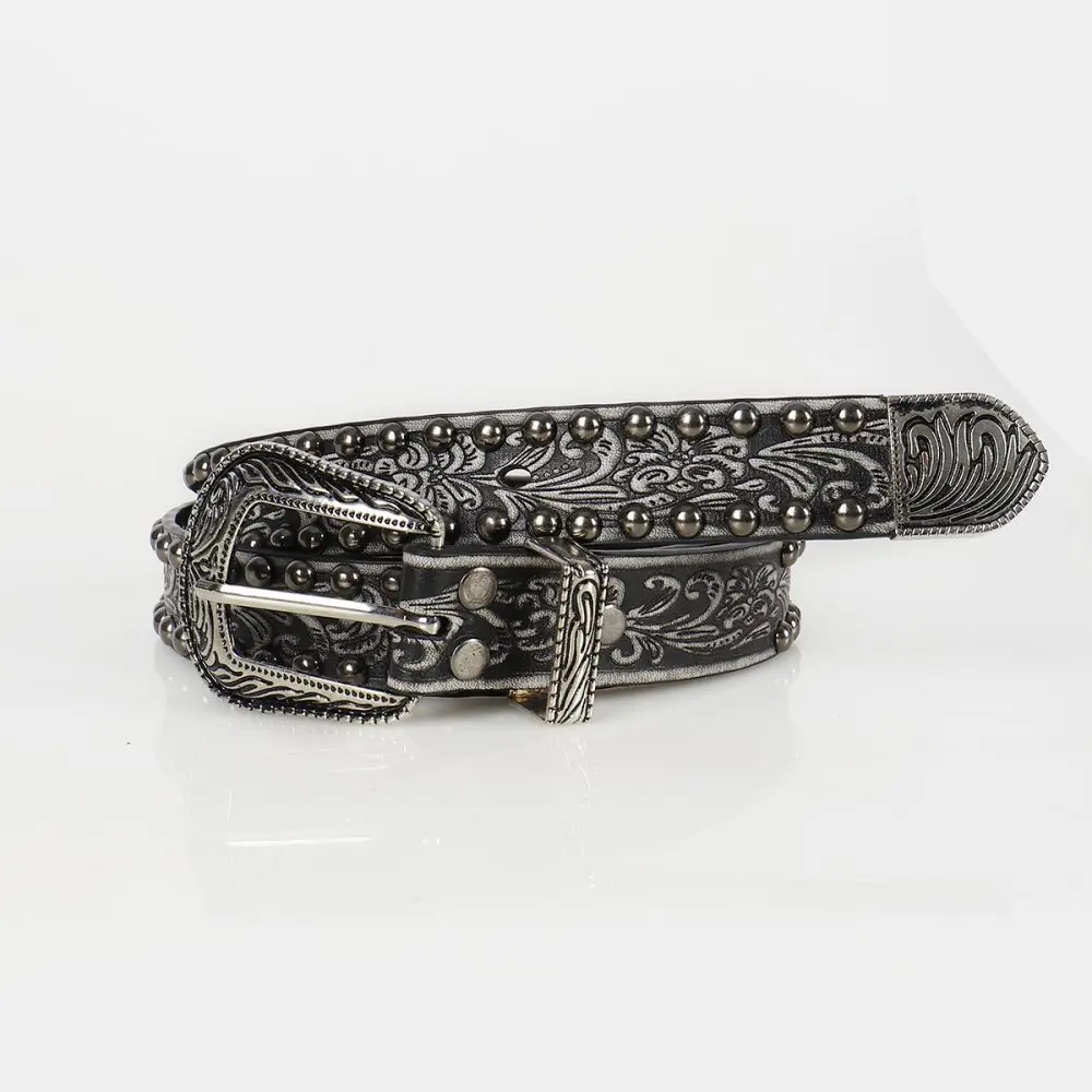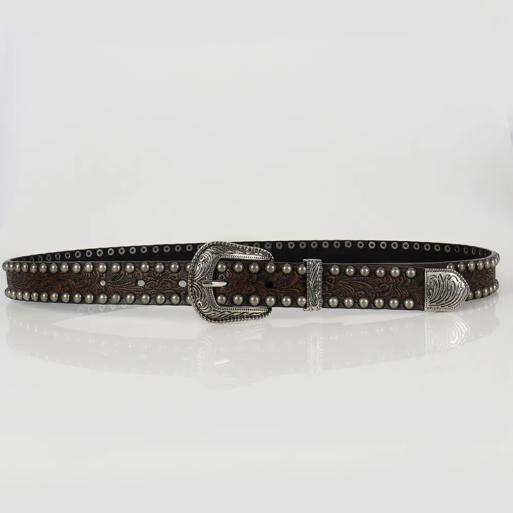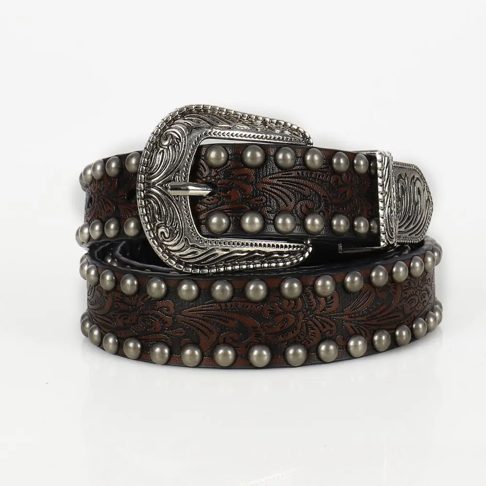 1Pc Women'S Retro Carved Alloy Needle Buckle Belt Men'S round Rivet Belt Punk Rock Jeans Belt PU Leather Belt for Men Women Belt