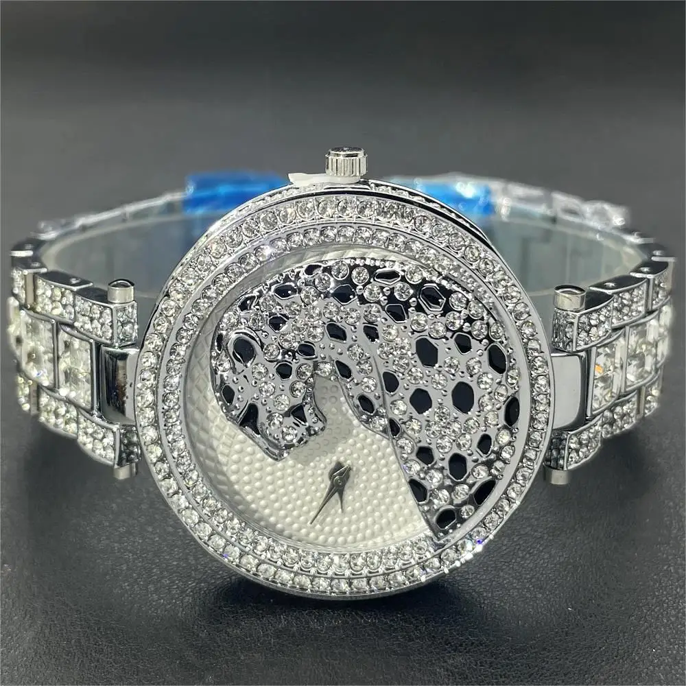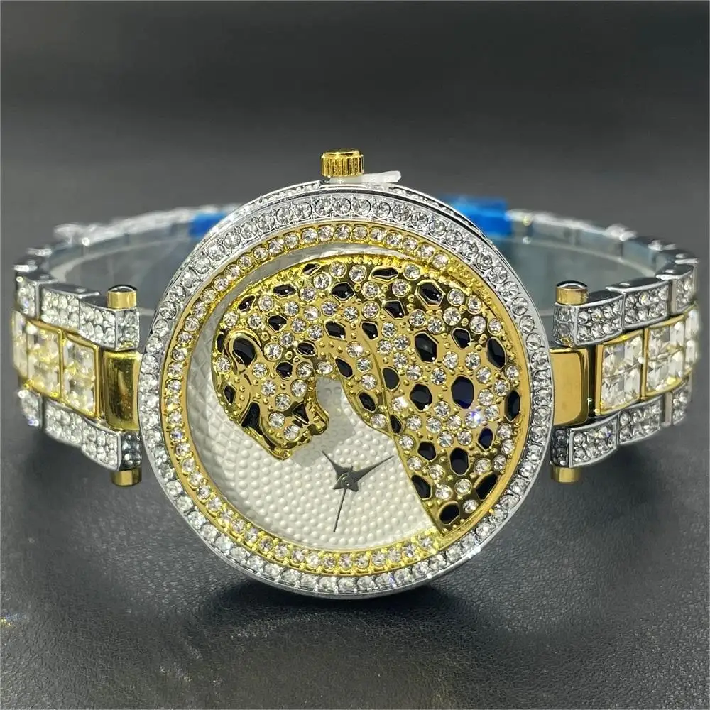 2024 Casual Womens Quartz Watches Fashion Bling Iced Watch for Ladies Crystal Diamond Leopard Clocks Reloj Free Shipping