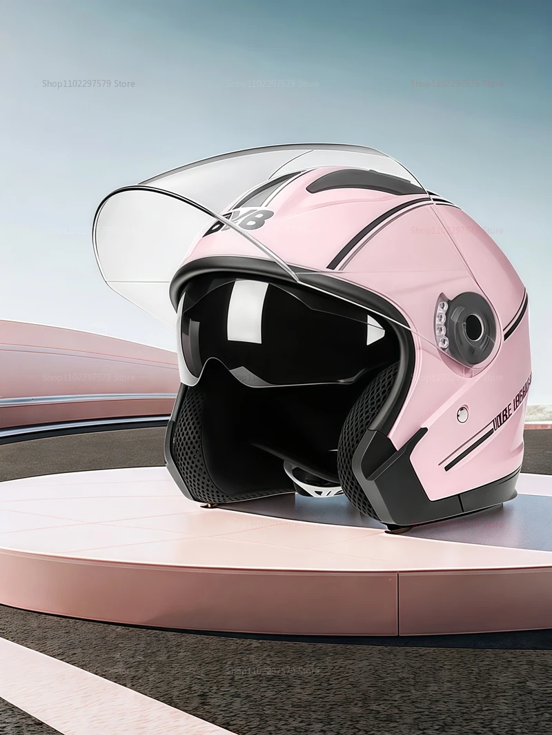 2025 Electric Motorcycle Helmet with Double-Lens Anti-Fog Design Full Face Helmet for Riding All Seasons Safety Gear Helmet