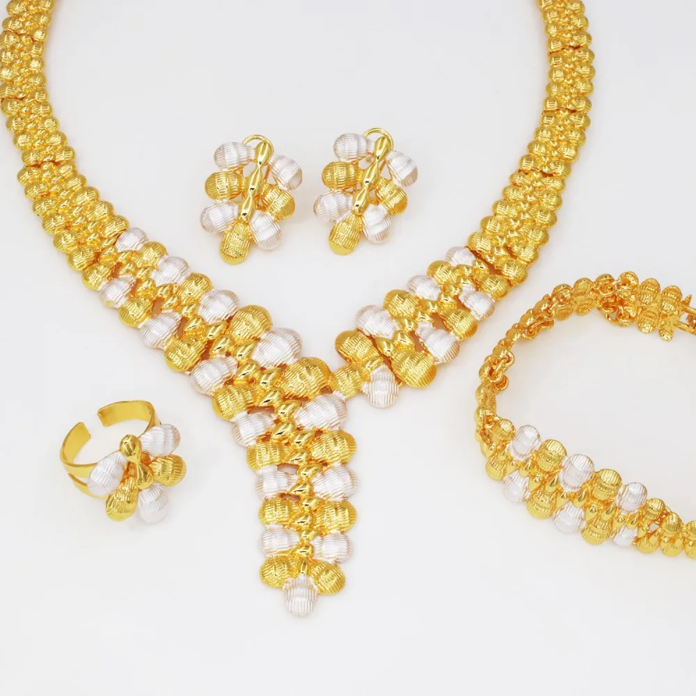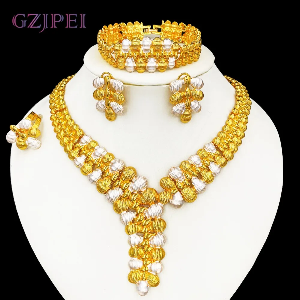 2025 New Big Jewelry Set for Bridal Wedding Jewellery Africal Dubai Gold Plated Necklace Bracelet Earring Classic Ring