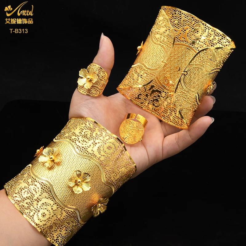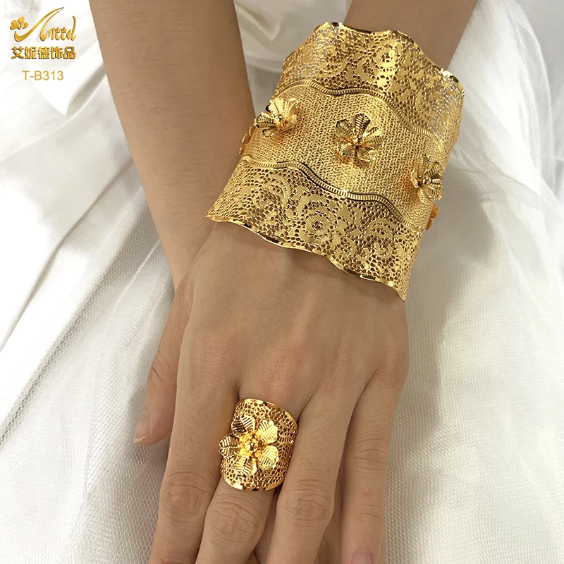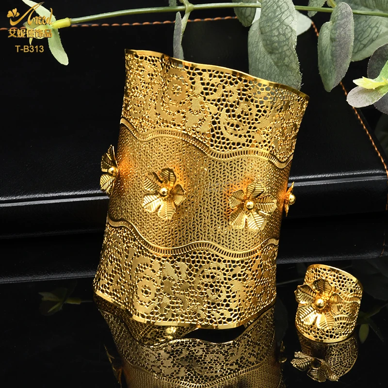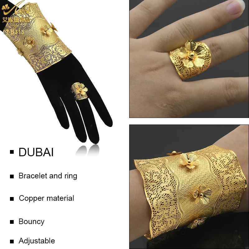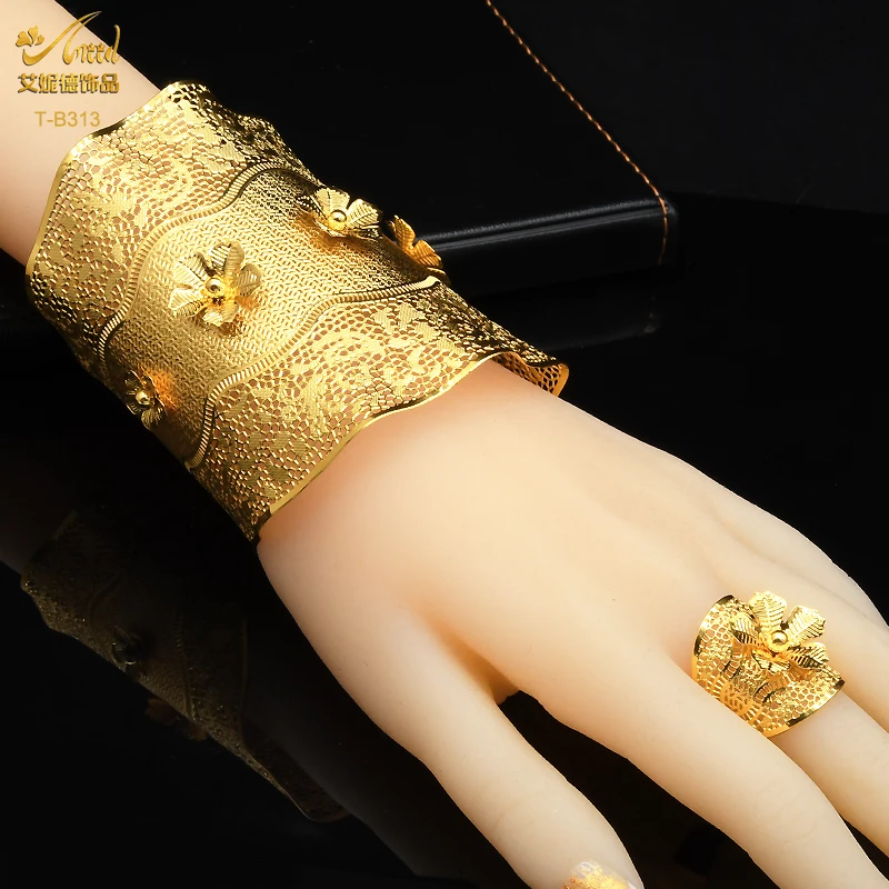 ANIID 24K Dubai Gold Plated Bangle Bracelet With Rings For Women Bridal Designer African Jewelry Wedding Ethiopian Bracelets
