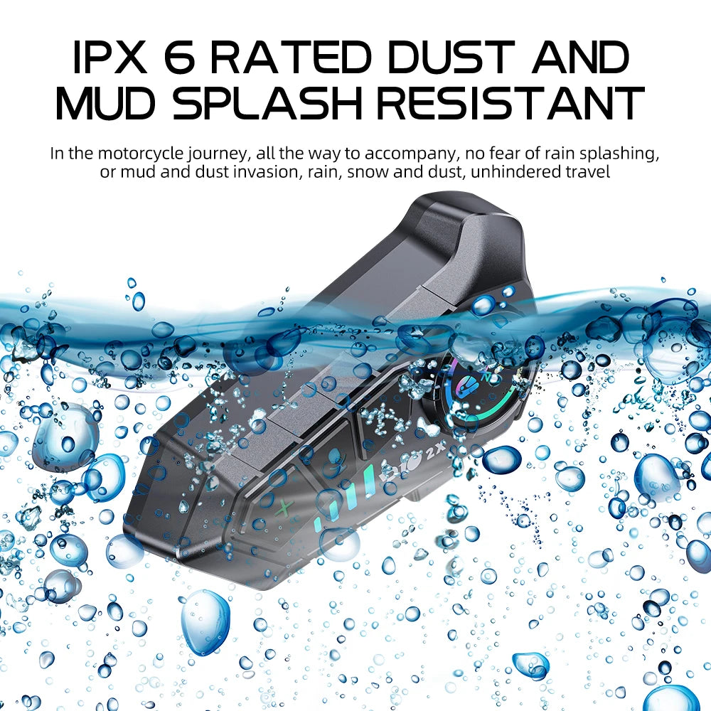 1/2X Motorcycle Intercom Headset Helmet BT 5.3 for 2 Riders Intercommunicator 300M Waterproof Music Sharing Interphone