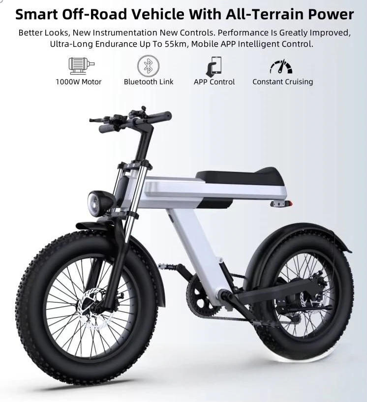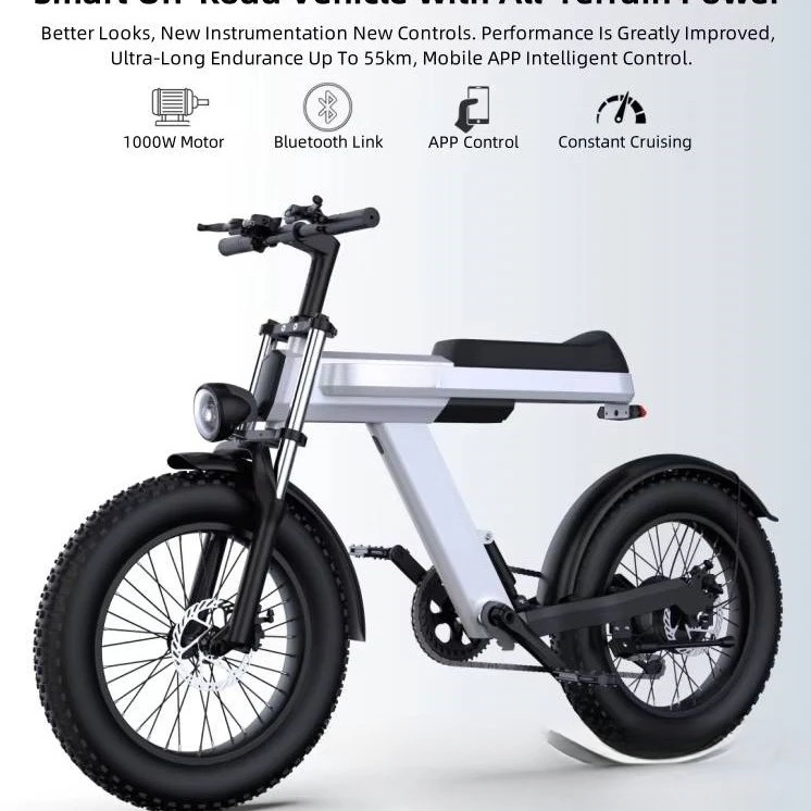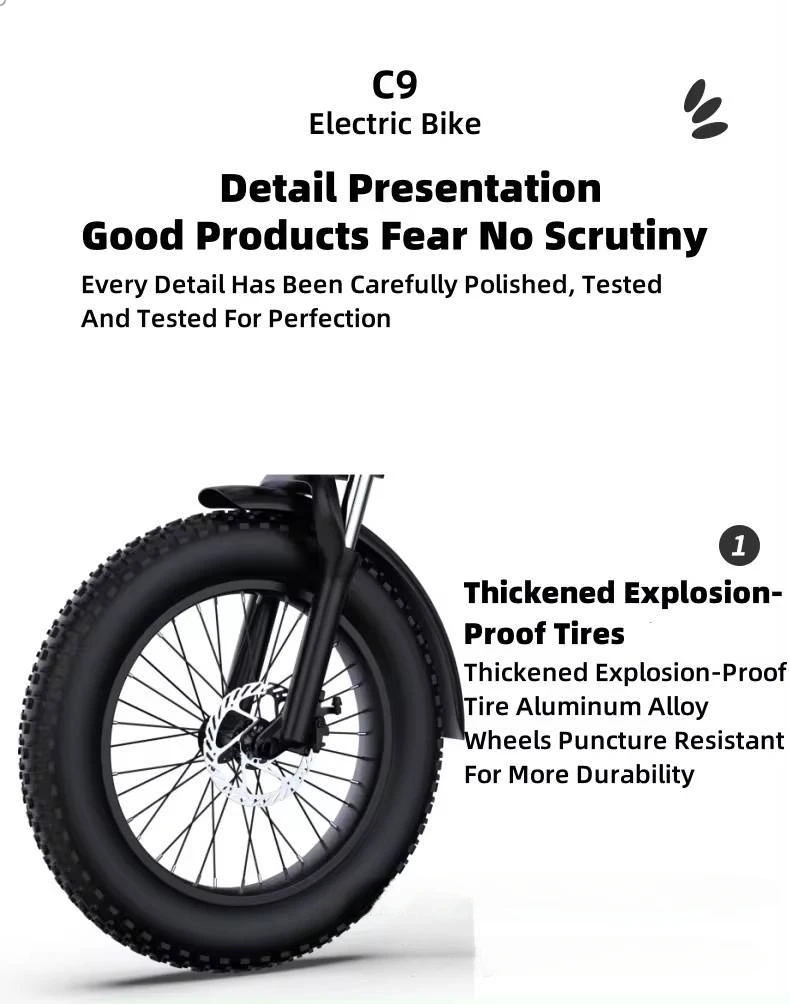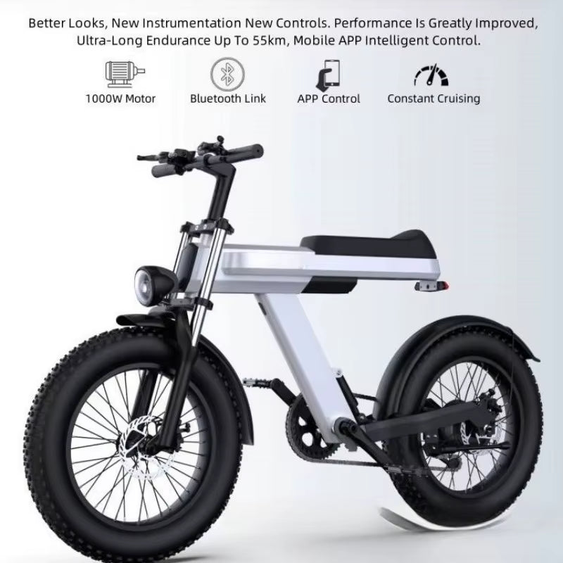 20 Inch Fat Tire Snow Electric Bicycle, Aluminum Alloy Lithium Battery Electric Vehicle, Wide Tire Off-Road Vehicle, Shockproof