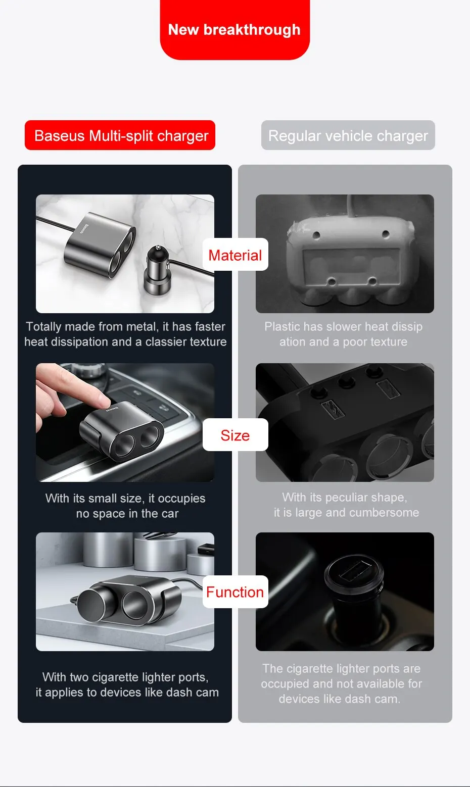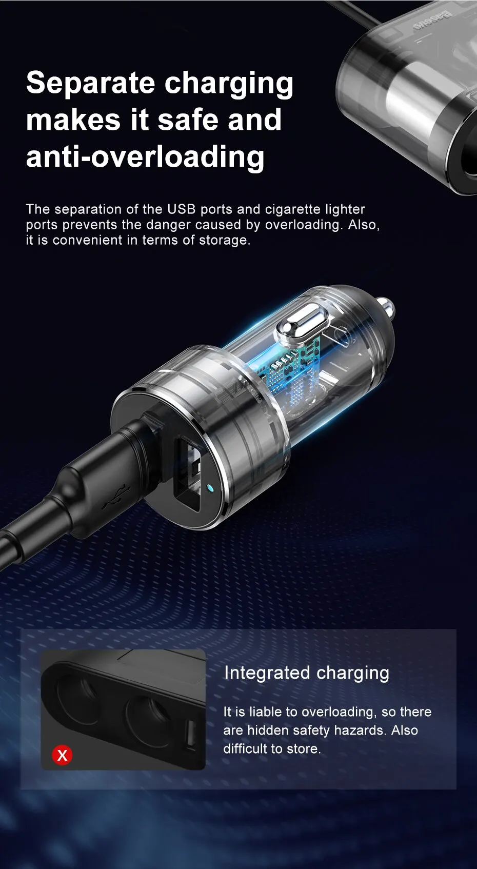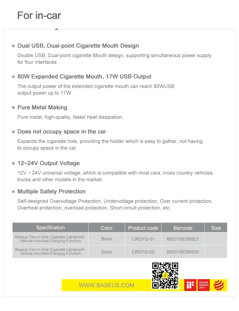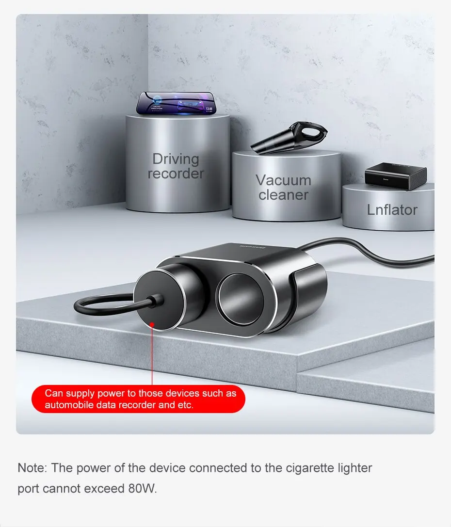 Name:Baseus Two-in-One Cigarette Lighterwith Vehicle-mounted Charging Function