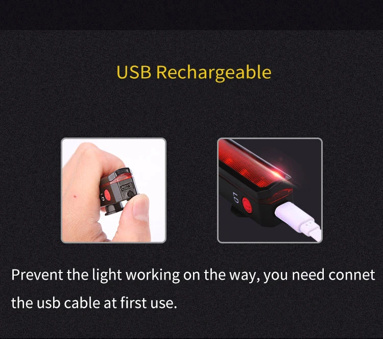 • USB Rechargeable :With the ability to recharge via USB, you can easily charge your bike light using a power bank or any other USB-enabled device.