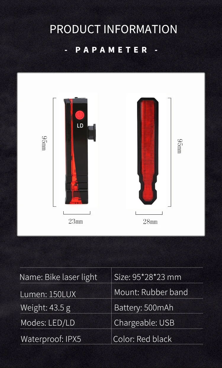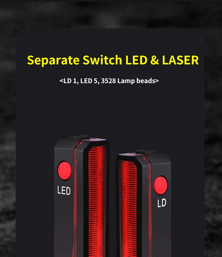 • Laser Line Warning Lamp :The laser line warning lamp provides a bright and visible warning to other road users, ensuring your safety while cycling.