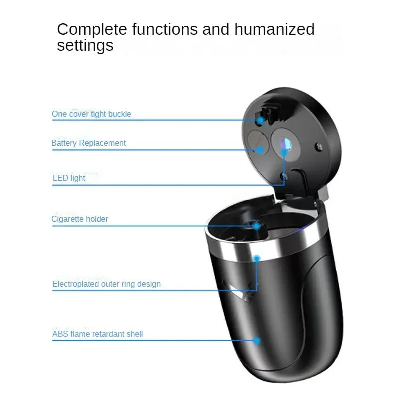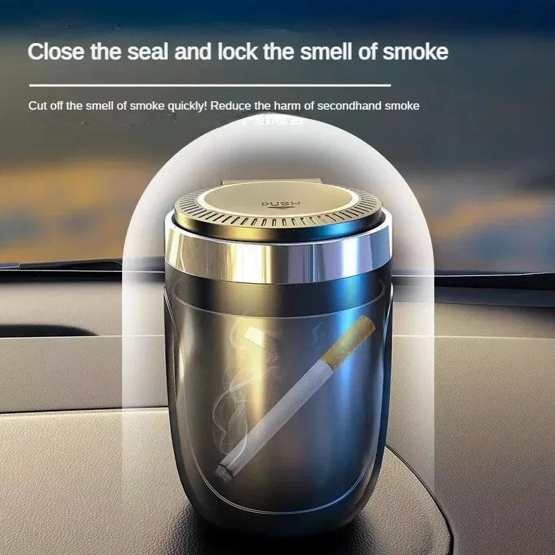 Car Ashtray Multi-Purpose Vehicle with Cover Creative Metal Automatic Ashtray with Light Car Interior Accessories Auto Parts