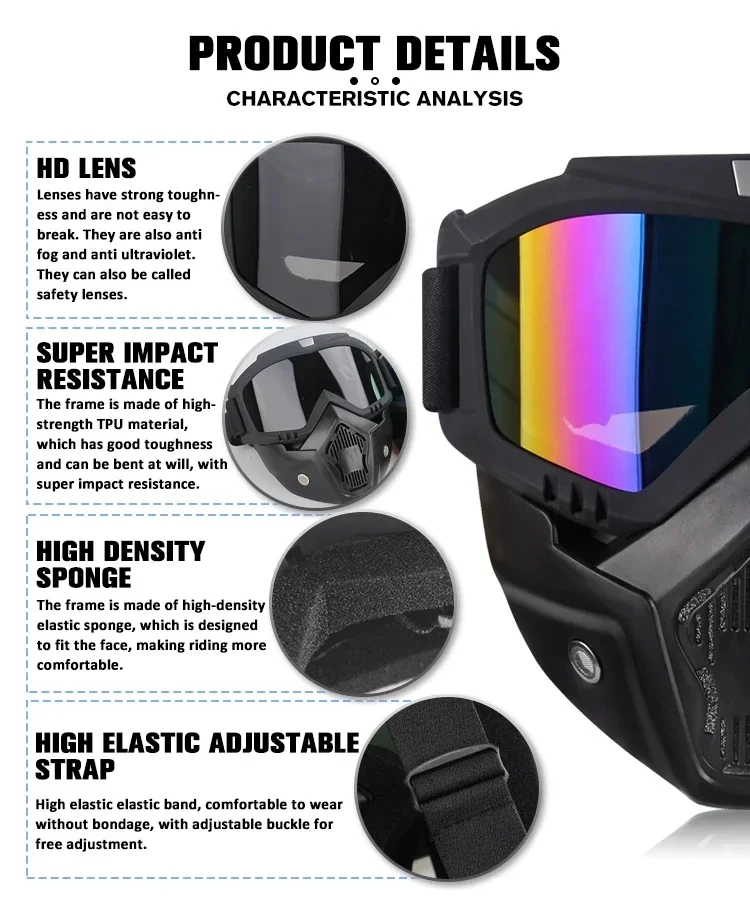 • Windproof design :The mask goggle's windproof design ensures that your eyes are protected from the wind while riding a motorcycle or engaging in outdoor sports.