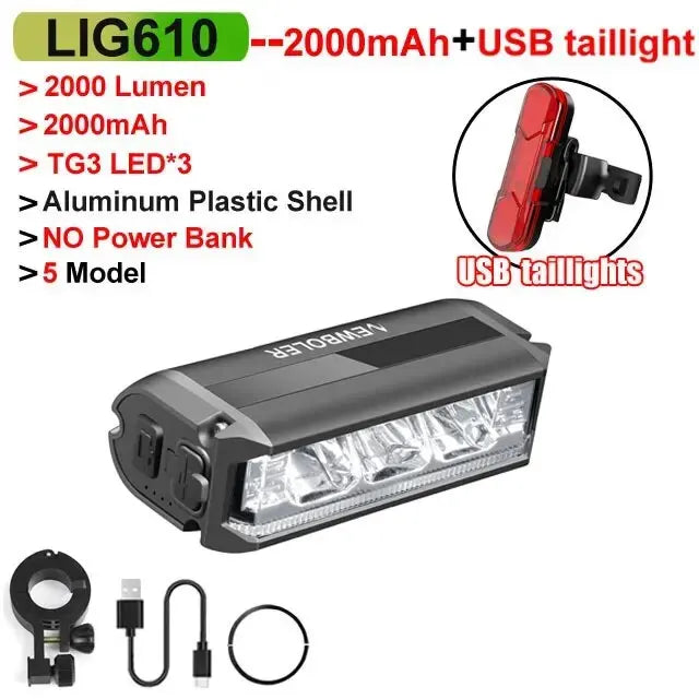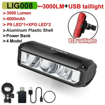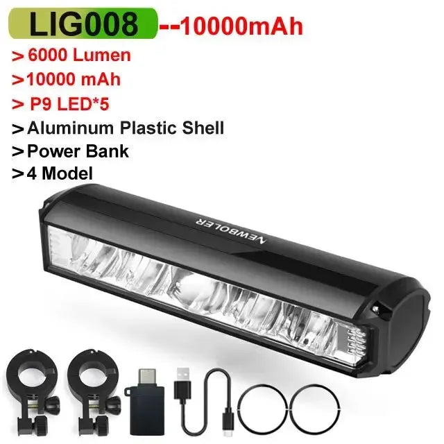 NEWBOLER Bicycle Light Front 8000Mah Bike Light Waterproof Flashlight 6000Lumen USB Charging MTB Road Cycling Lamp Accessories