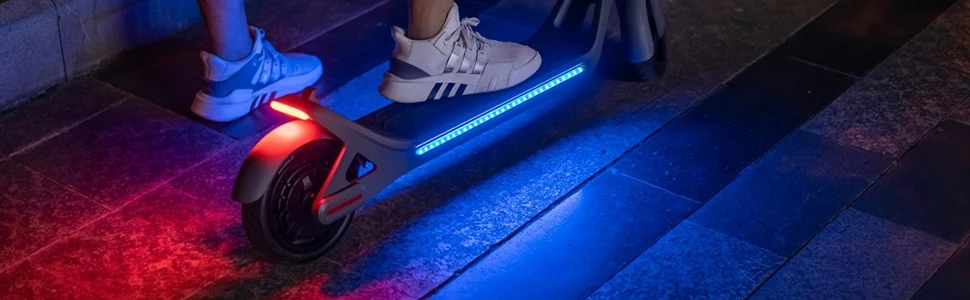 【COLORFUL AND ATTRACTIVE】The scooter's light strip supports multiple mode flash, multiple color change and high absorption area coverage.