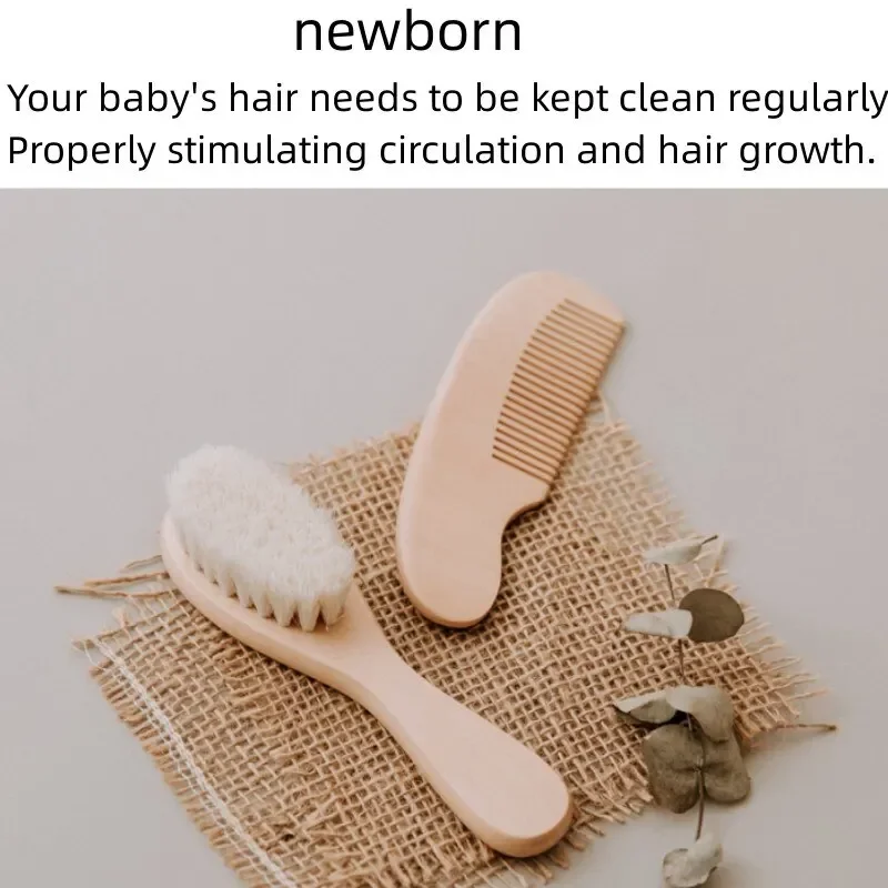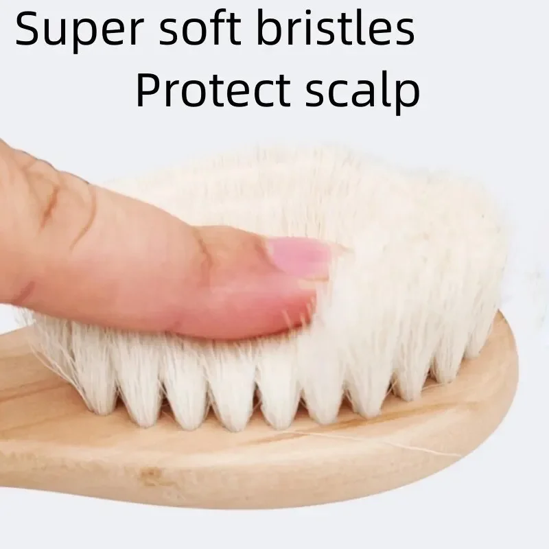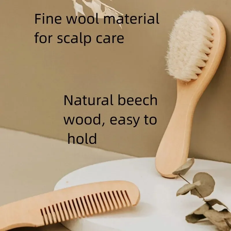 2PCS Newborn Wool Baby Wooden Brush Comb Newborn Hair Brush Infant Head Massager Portable Comb Hair Bath Brush Comb