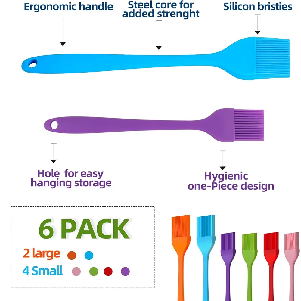 6 makeup brushes, 6 colors, 2 large sizes and 4 small sizes, multi-color combination to make your cooking more interesting. Suitable for grilling, kitchen, grilling, baking.