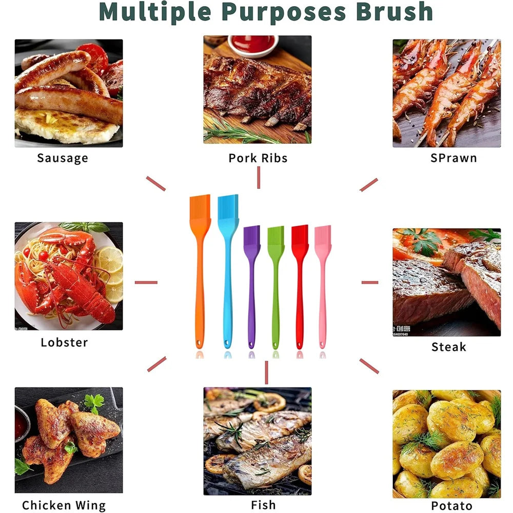 6 PCS Food Grade Silicone Oil Brushes Upgraded Heat Resistant BBQ Cooking Pastry Brushes Baker Cake Bread Butter Kitchen Tools