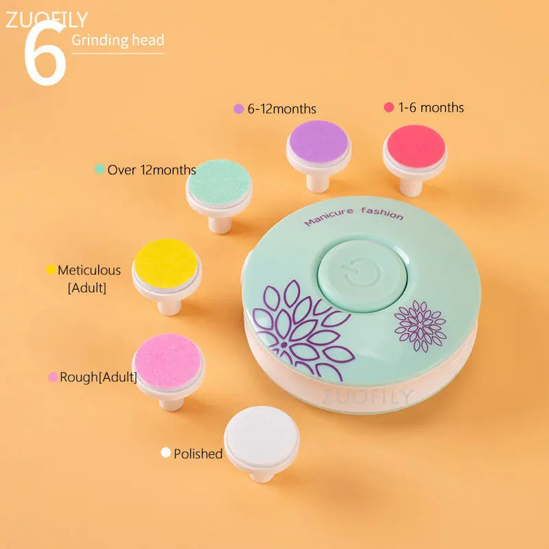 6Pcs Electric Baby Nail Trimmer Kid Nail Polisher Tool Infant Manicure Scissors Newborn Hygiene Kit Nail Clipper Cutter with Bag