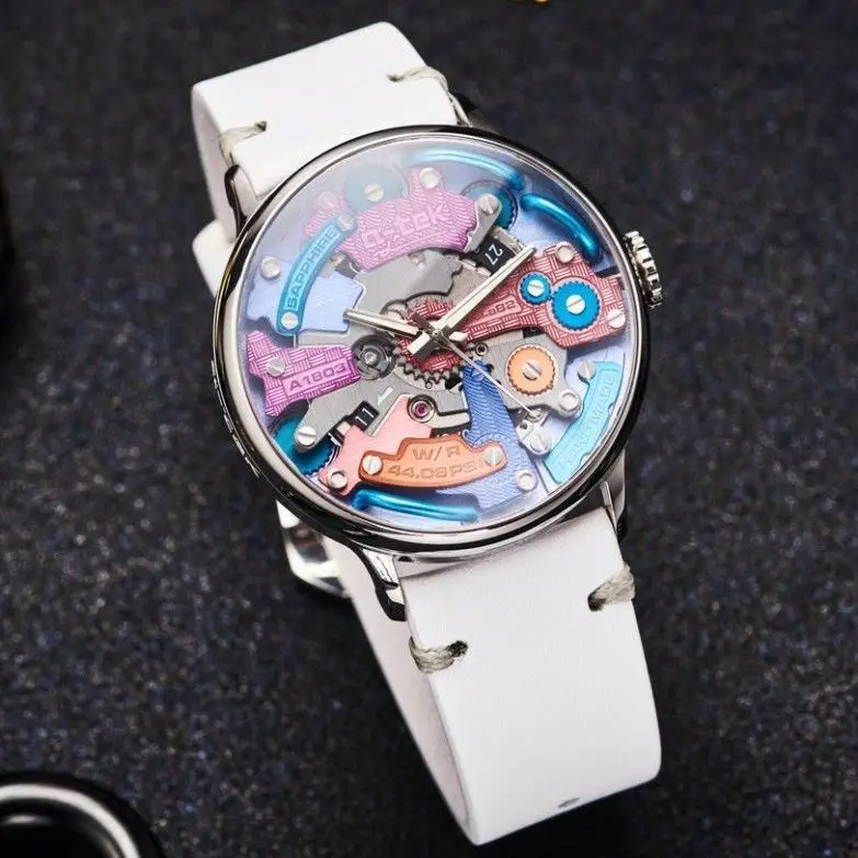 A-TEK Fashion Colorful Hollow Watch A1803WX Leather Mechanical Watches Neutral Sapphire Mirror