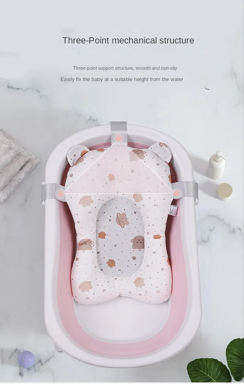 Baby Shower Bath Tub Pad Non-Slip Newborn Bathtub Mat Safety Nursing Foldable Support Comfort Body Cushion Mat Pillow Cartoon