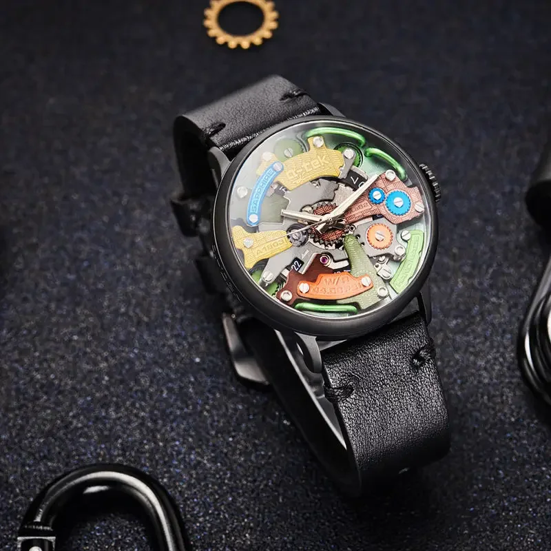 Genuine A-TEK Fashion Trend Mechanical Men's Watch A1803X Punk Three-dimensional Empty Boy's Watches