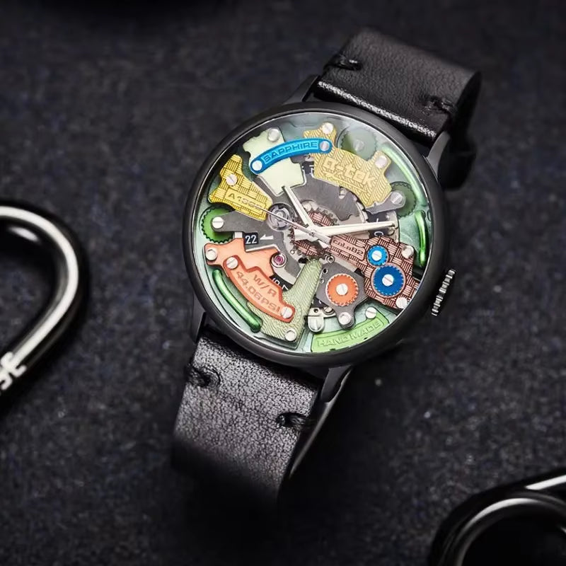 Genuine A-TEK Fashion Trend Mechanical Men'S Watch A1803X Punk Three-Dimensional Empty Boy'S Watches