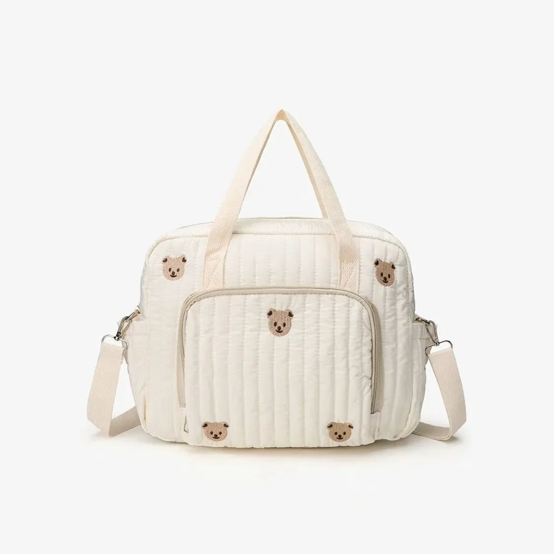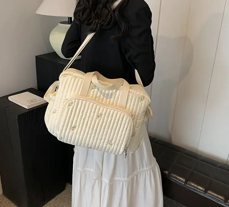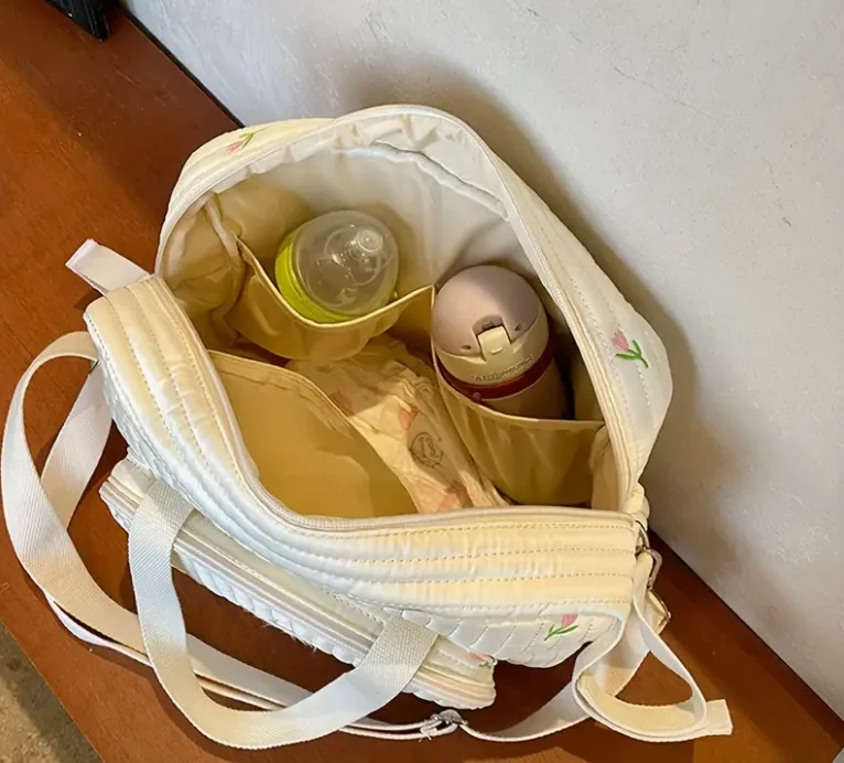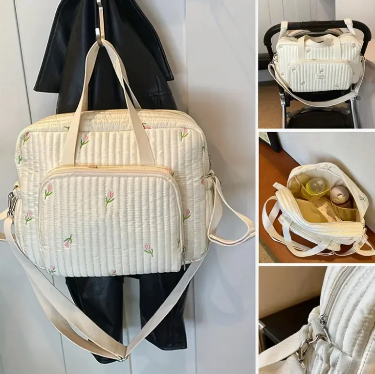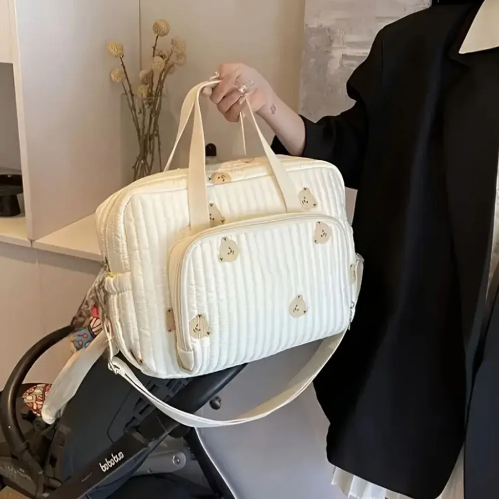 Large Capacity Quilted Diaper Bag Backpack for Moms - Durable Polyester Stroller Hanging Organizer with Multiple Compartments