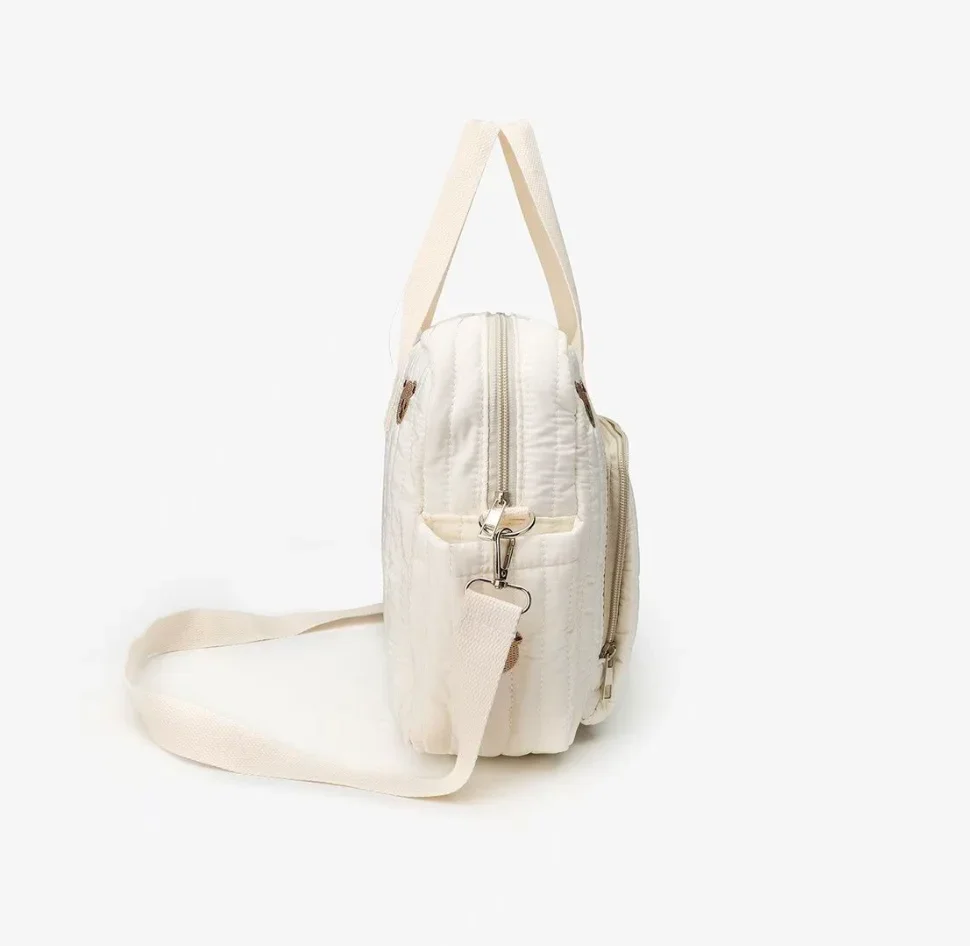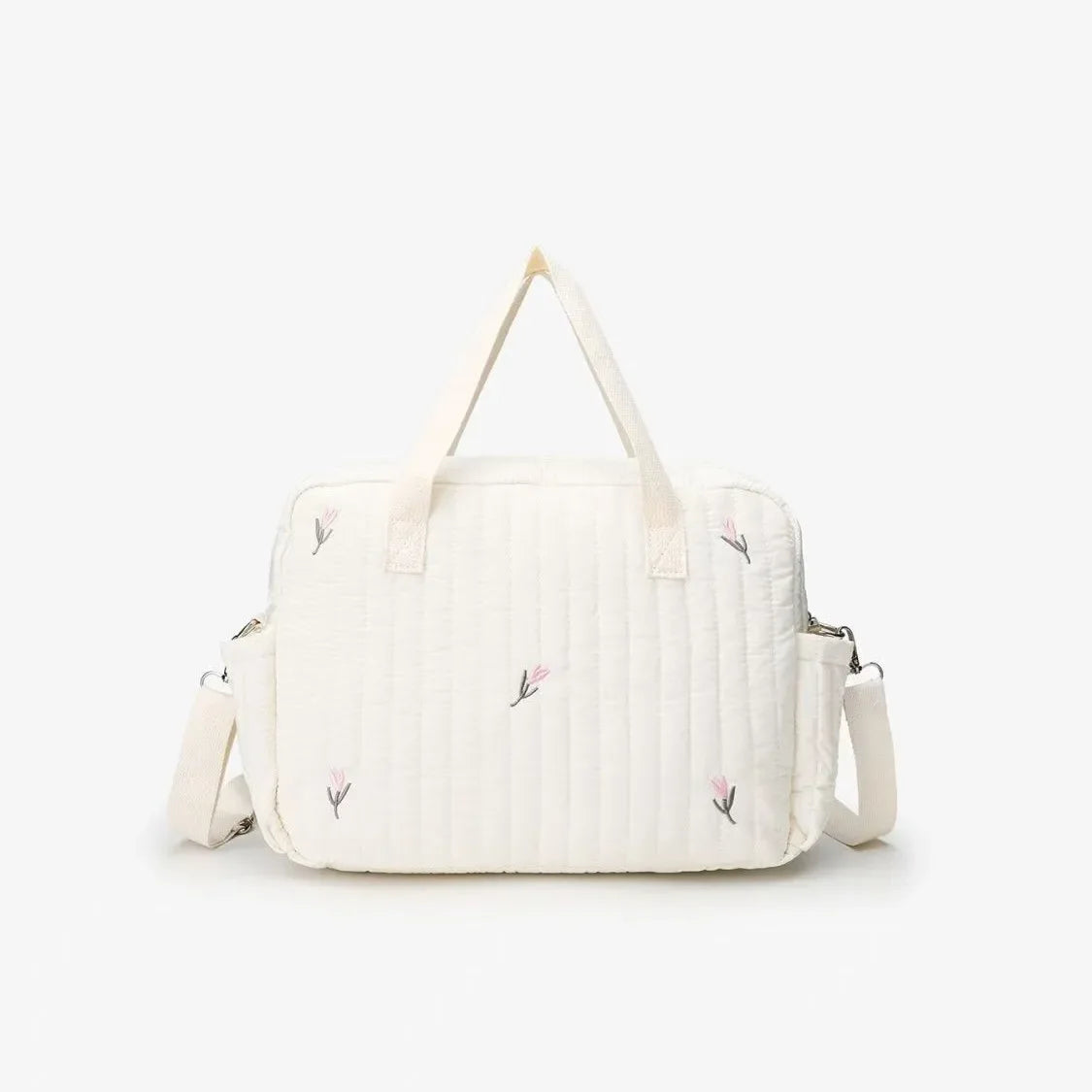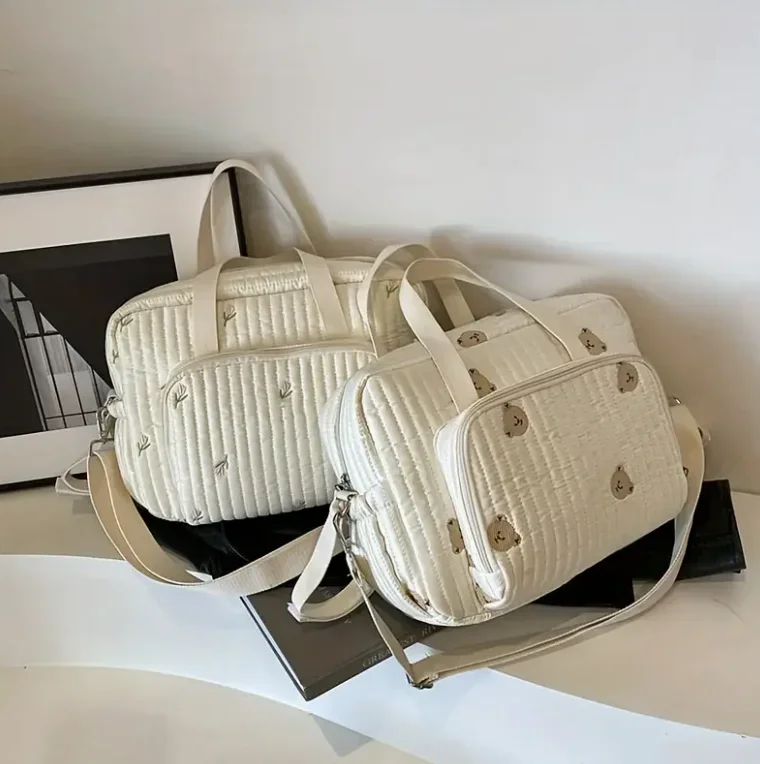 Large Capacity Quilted Diaper Bag Backpack for Moms - Durable Polyester Stroller Hanging Organizer with Multiple Compartments