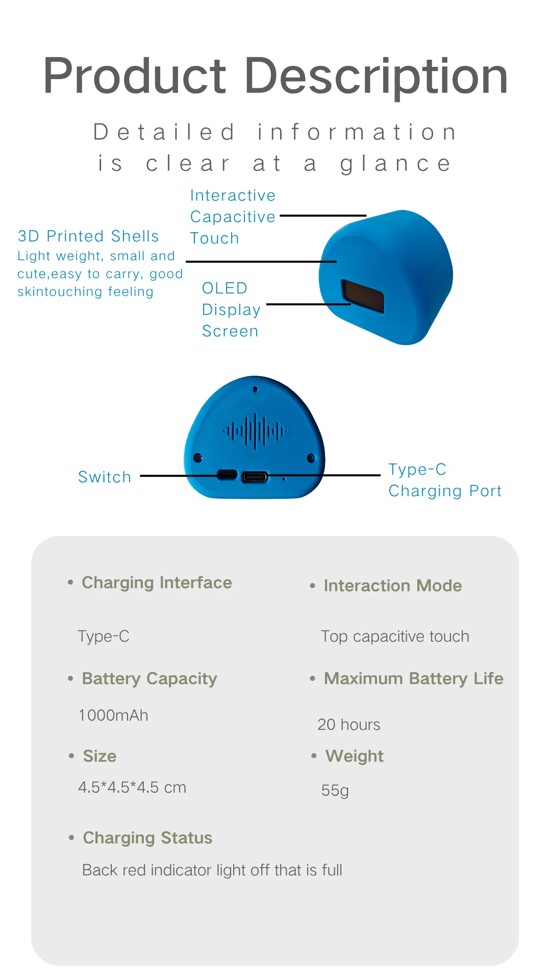 PAOBOT Intelligence Robot Companion Emo Robot Pets Interactive Smart Robot Toy Mini Desktop Robot Electronic Tamagotchi