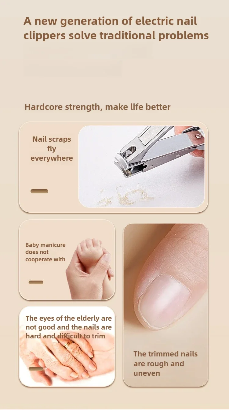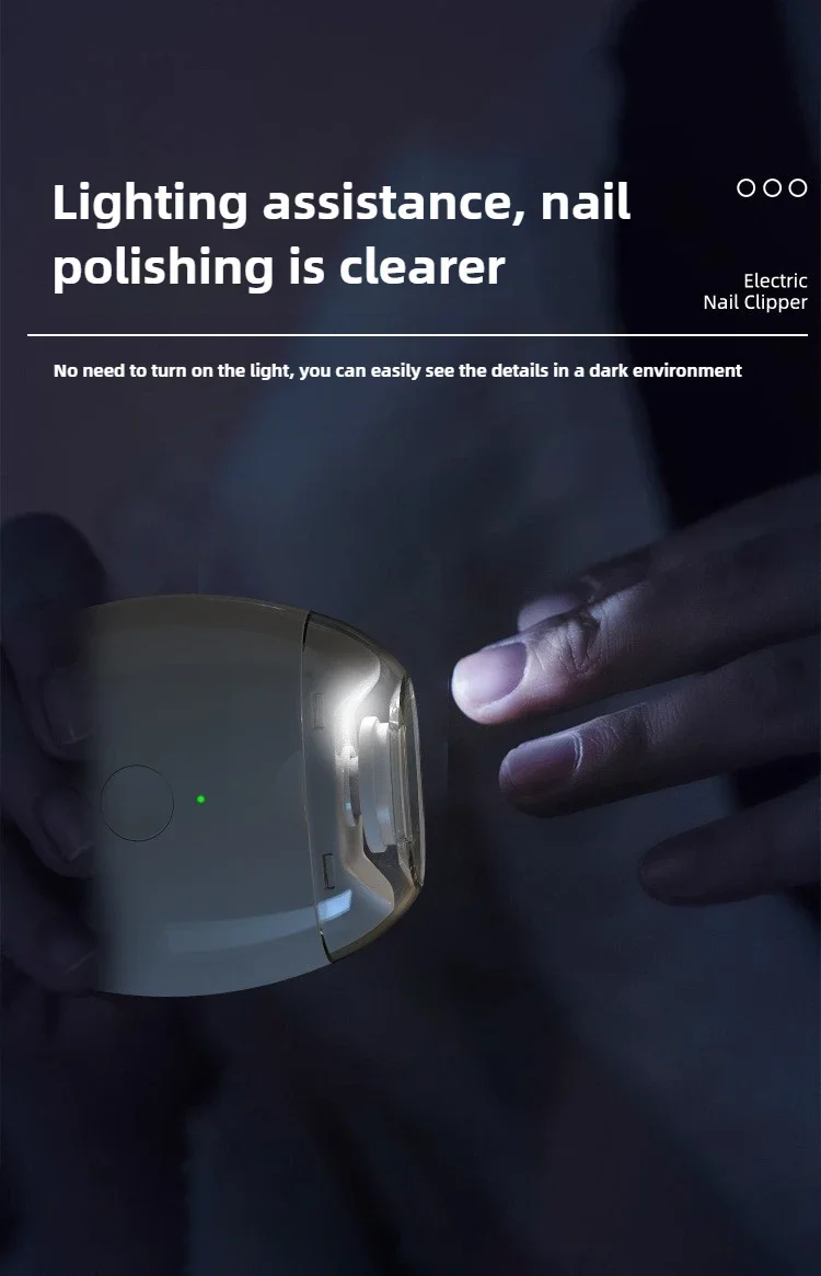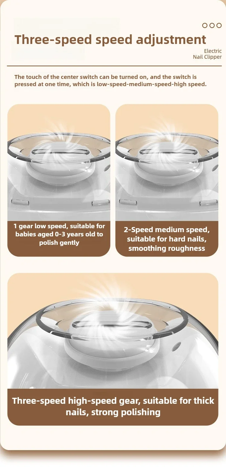 Portable Mini Electric Nail Clipper Polisher with Light Low Noise Baby Trimmer Manicure Tools for Baby Adult Nail Cutter 3 Speed