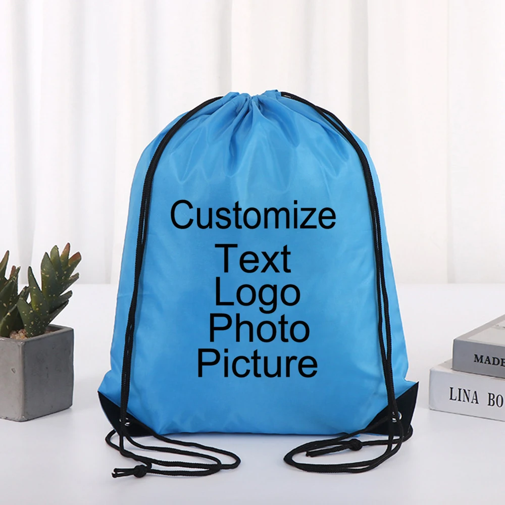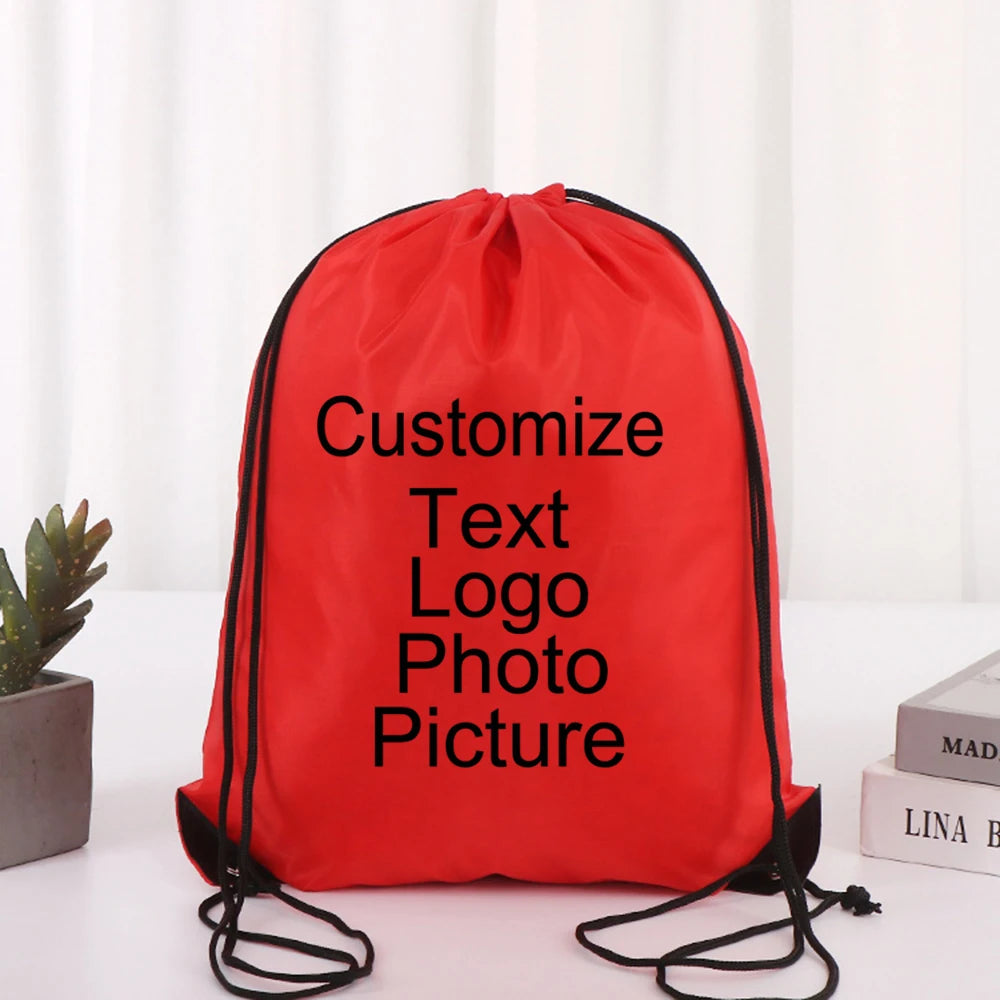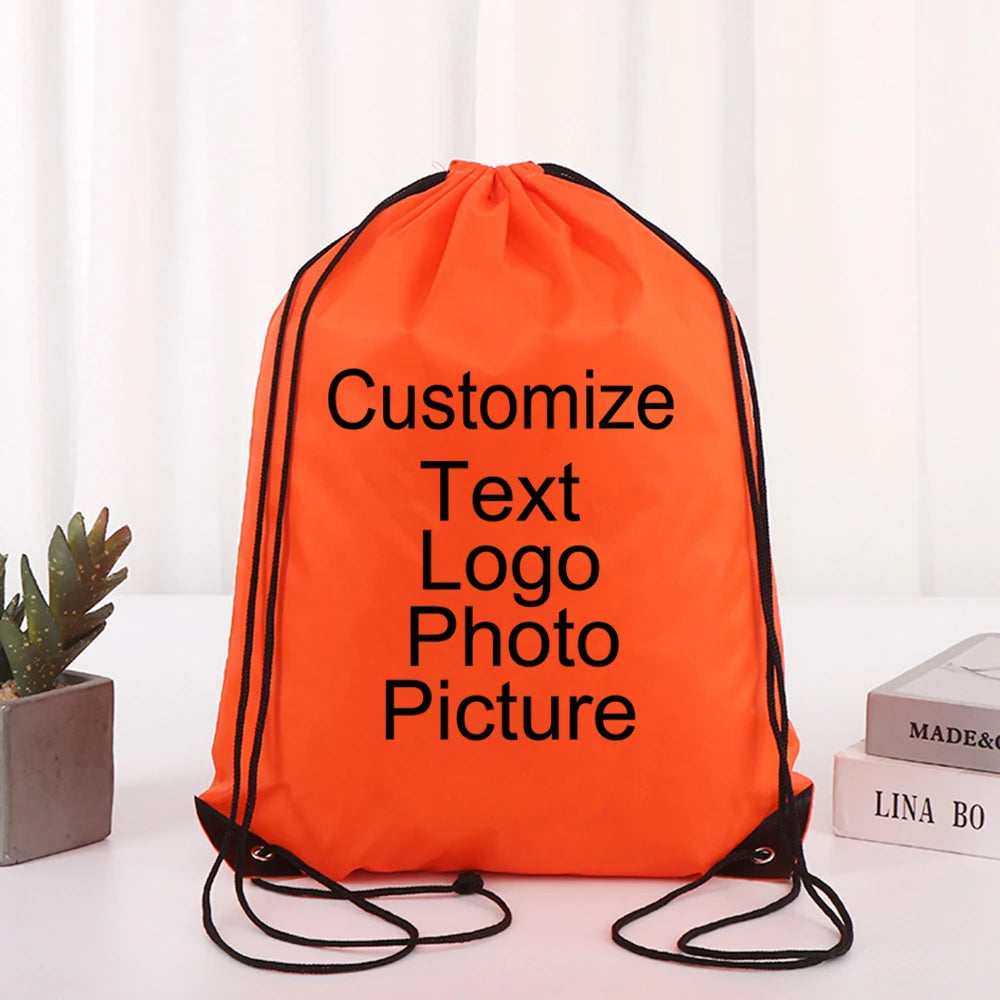 Customize Logo/Text/Name Cycling Backpack Gym Drawstring Shoe Bag Clothes Backpack Waterproof Belt Nylon Portable Sports Bag