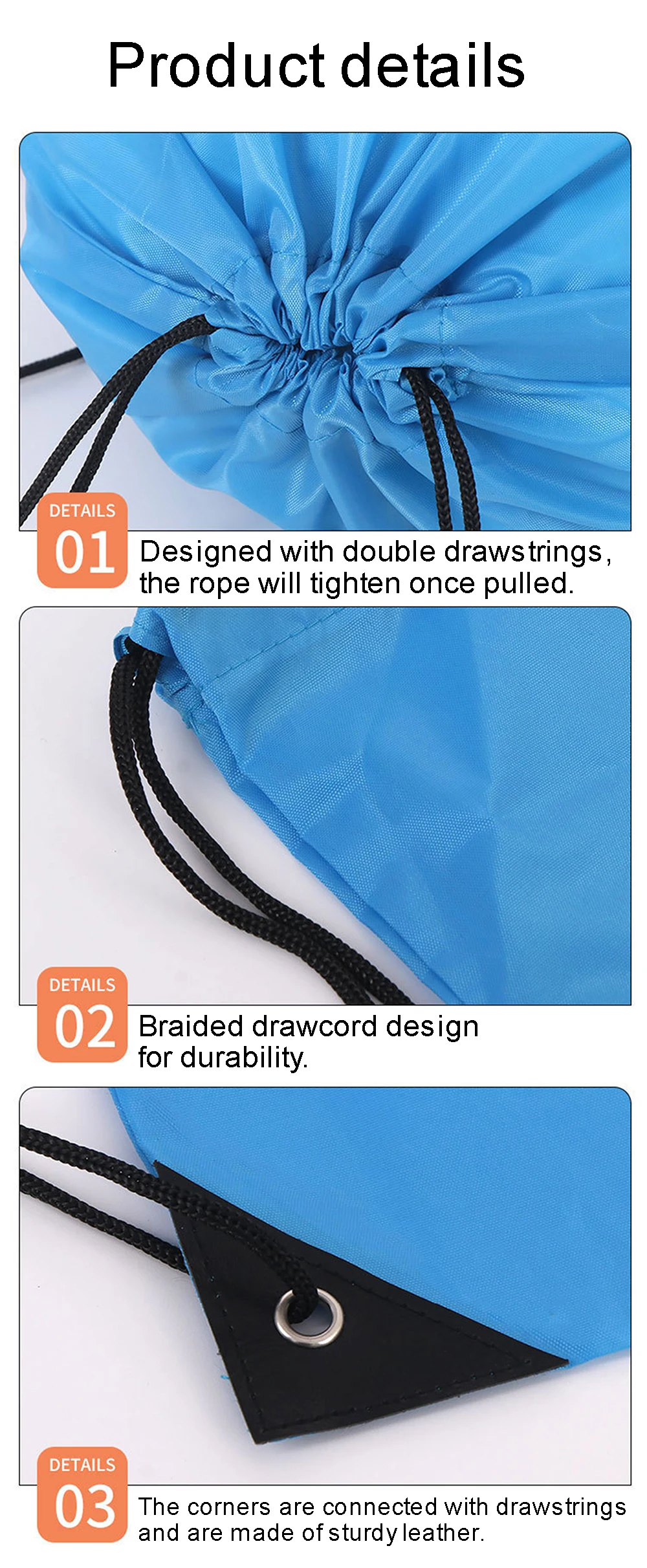 Double drawcord closures -- can be used as a backpack, convenient to carry.
