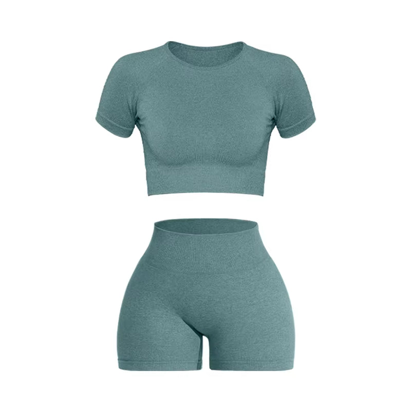 2PCS Women'S Sports Yoga Set Seamless Ribbed Knitted Fitness Sportswear