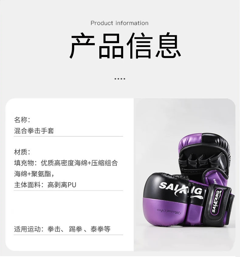 Adult Boxing Gloves, Half Finger Gloves, Professional Combat Muay Thai, MMA Split Finger Gloves, Children'Shalf Finger Gloves