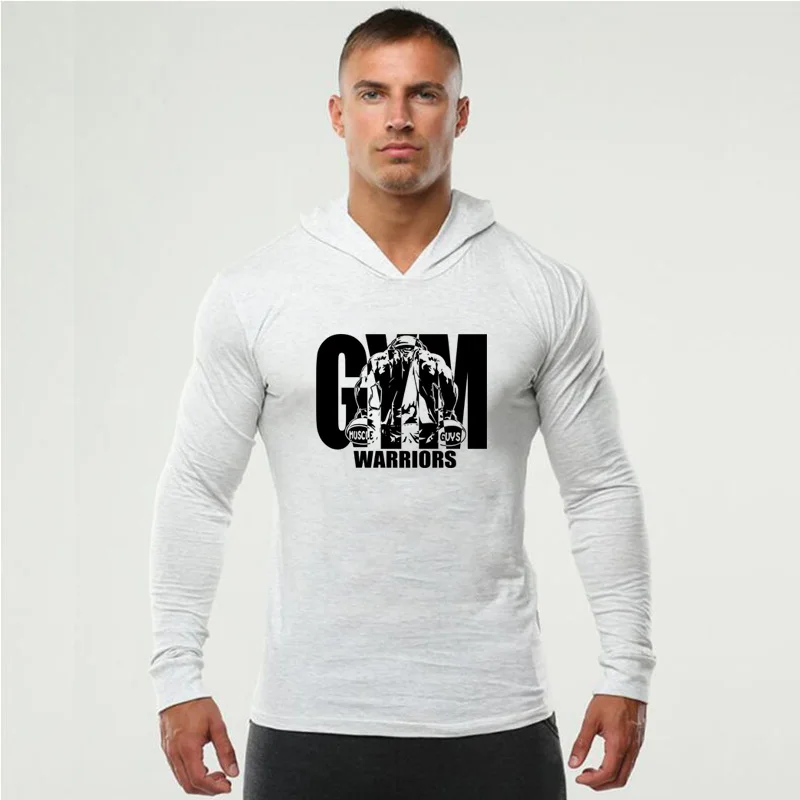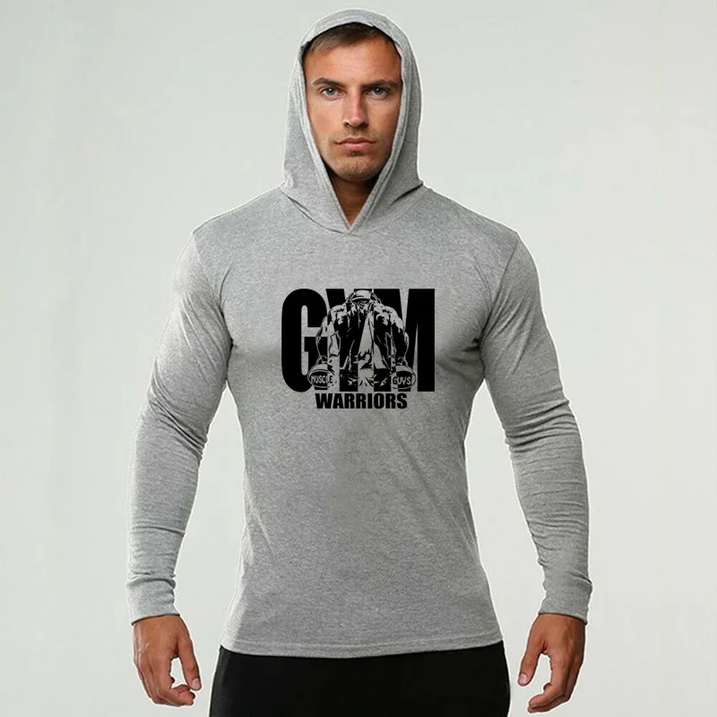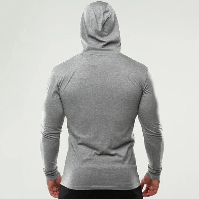 Autumn Comfortable Hooded Long Sleeve T-Shirt Men Fitness Loose Casual Sports Cotton Tees