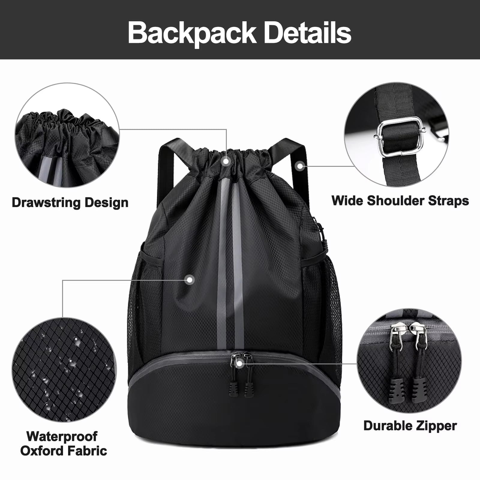 Basketball Bag, Swimming Bag, Dry Wet Separation Women'S Storage Bag, Sports Backpack, Training and Fitness Drawstring Backpack