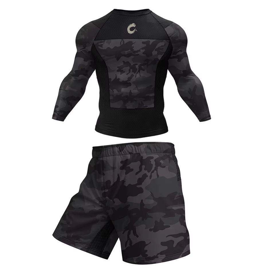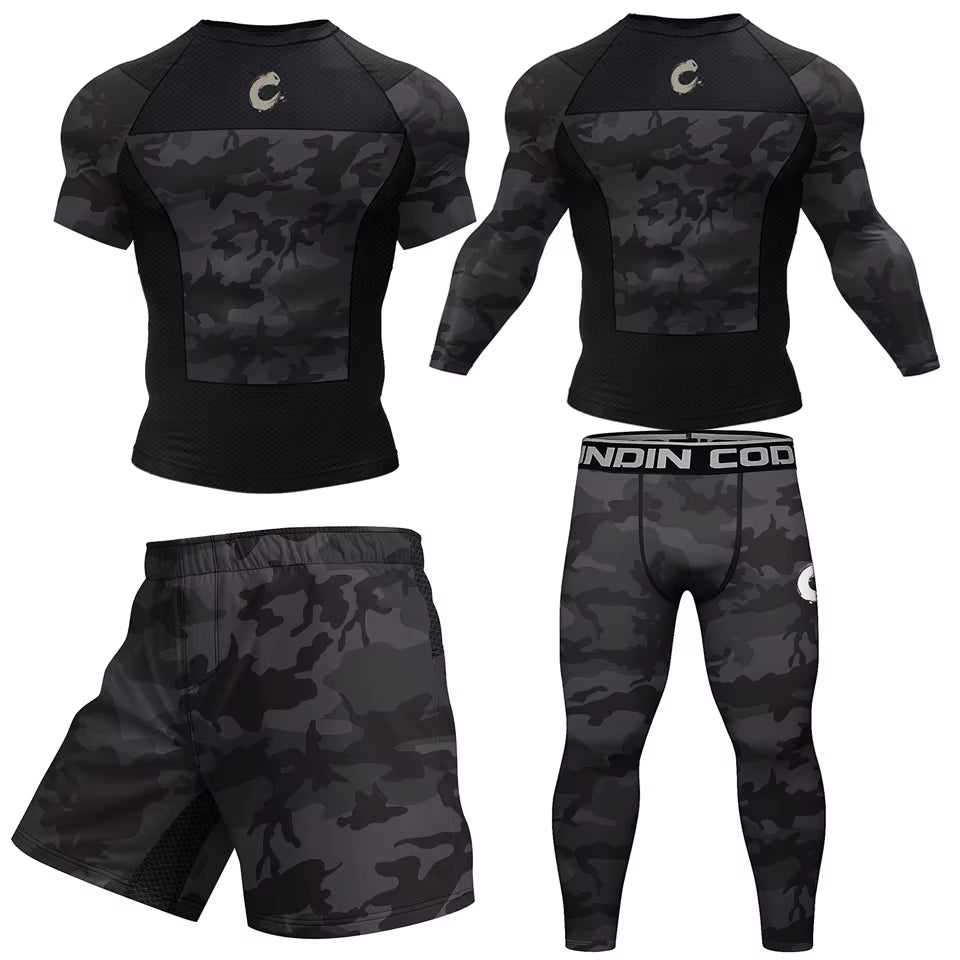 New Jiu Jitsu Rashguard MMA T-shirt +Pants For Men 4PCS/Set Brazilian Grappling Bjj Boxing Rash Guard Sport Clothing Gym Shorts