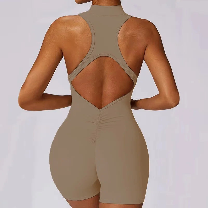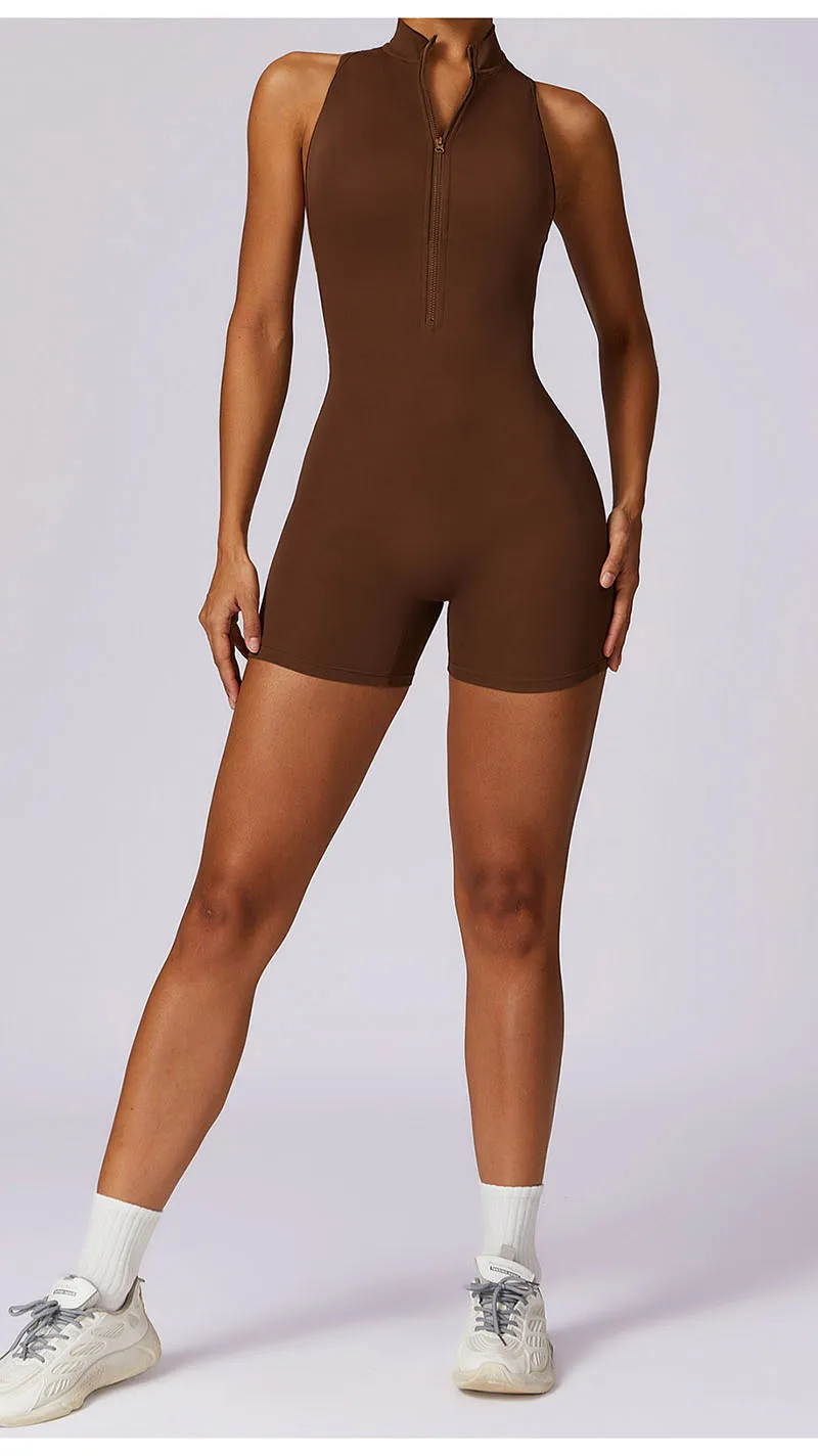 Front Zipper One Piece Jumpsuit Running Sports Bodysuit for Women Workout Women Overalls Sportswear Fitness Yoga Suit