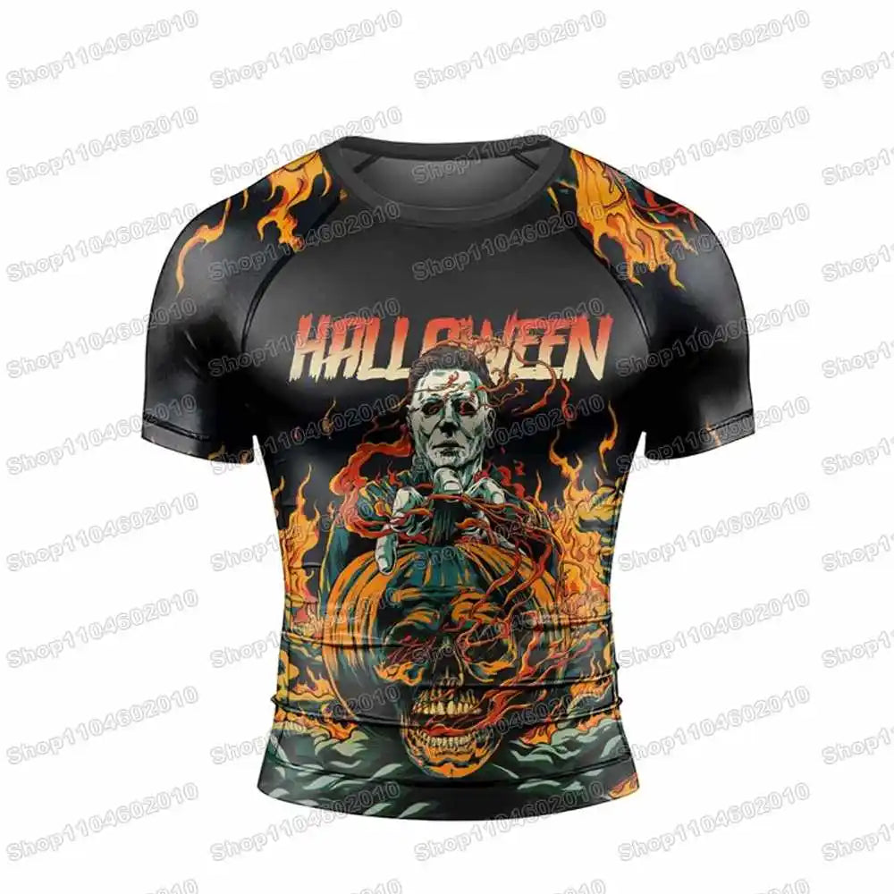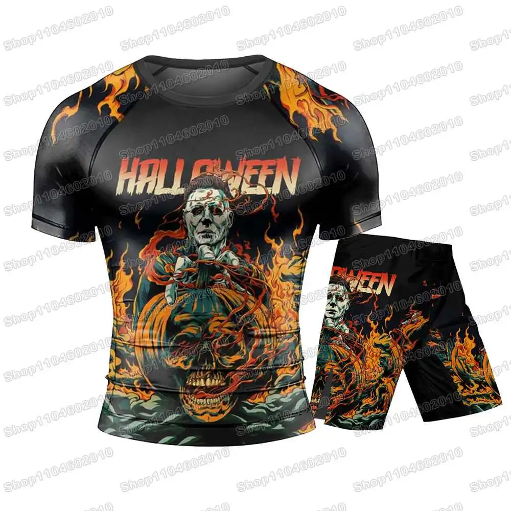 Halloween Michael Rash Guards Surfing Jersey Beach Shirts Swimwear Diving Gym Shorts MMA BJJ Men Jiu Jitsu Fitness Sets