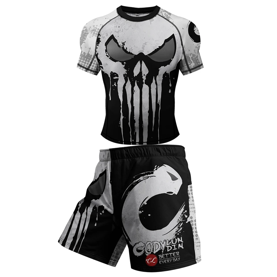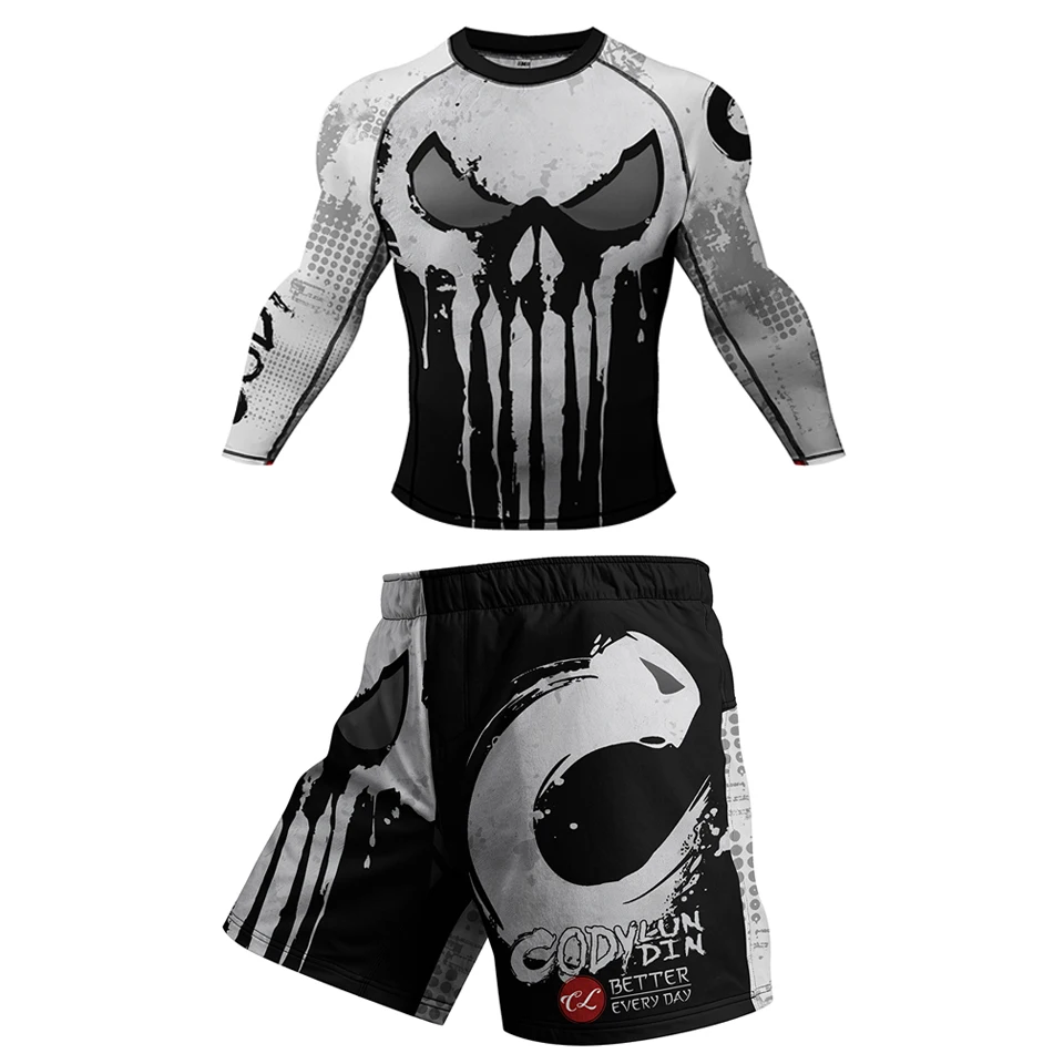 Jiu Jitsu Rashguard Men MMA Boxing T-Shirt +Pant Sets Compression Rash Guard Sportswear Bjj Kickboxing Jerseys Muay Thai Shorts