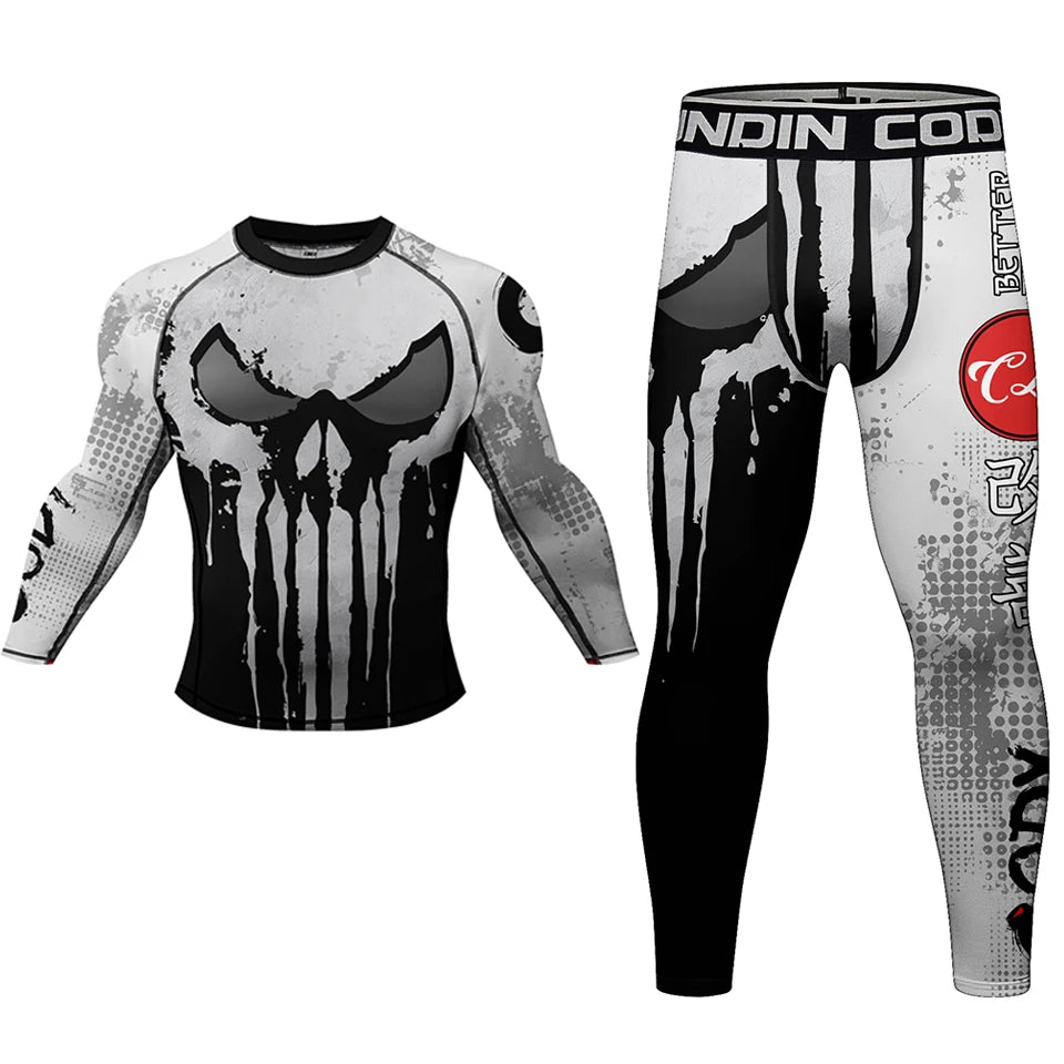 Jiu jitsu Rashguard Men MMA Boxing T-shirt +Pant Sets Compression Rash Guard Sportswear Bjj Kickboxing Jerseys