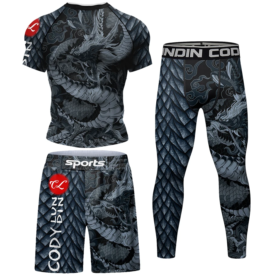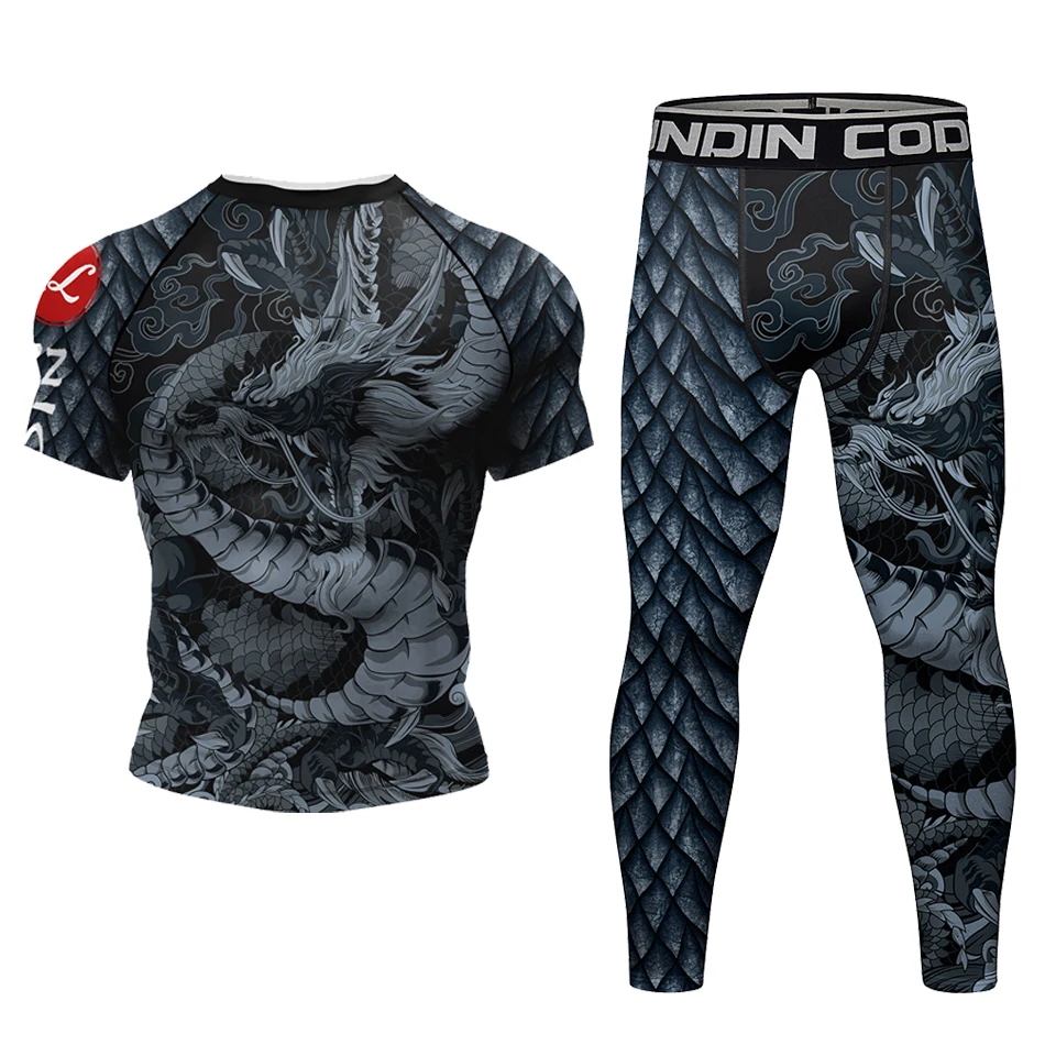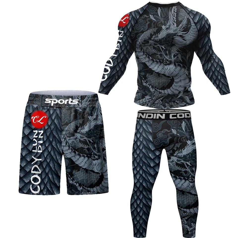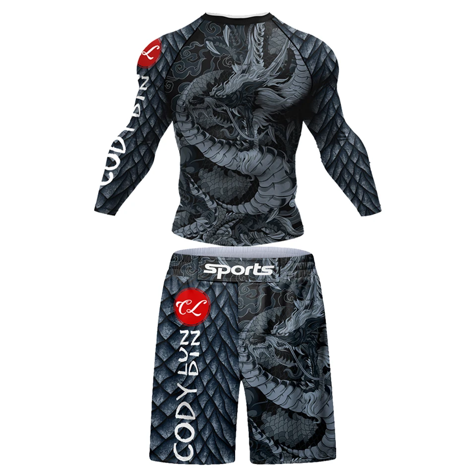 Jiu Jitsu Rashguard MMA Compression T-Shirt Men Sportsuit Muay Thai MMA Shorts Rash Guard Bjj Boxing Jerseys Gym Clothing Sets
