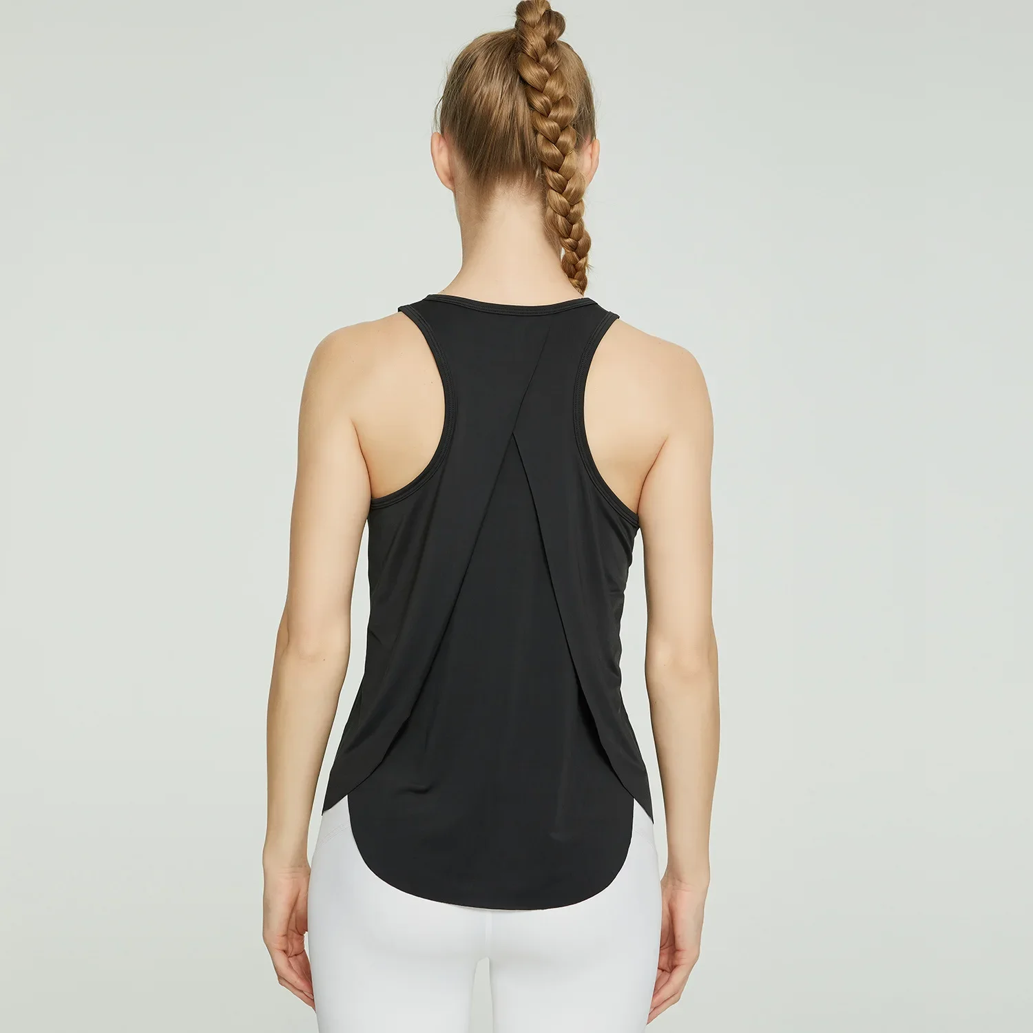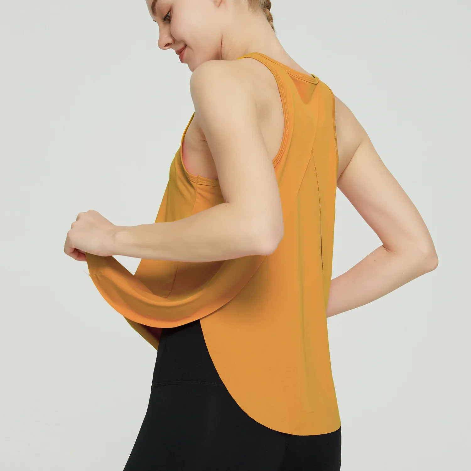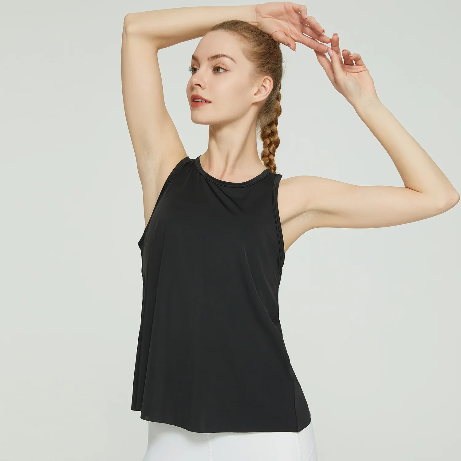 Loose Fit Sports Tank Top Women'S Sleeveless Fitness Vest Yoga Cover up Summer Cross-Border Elastic Tailored Back Design