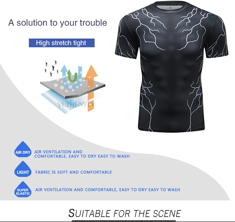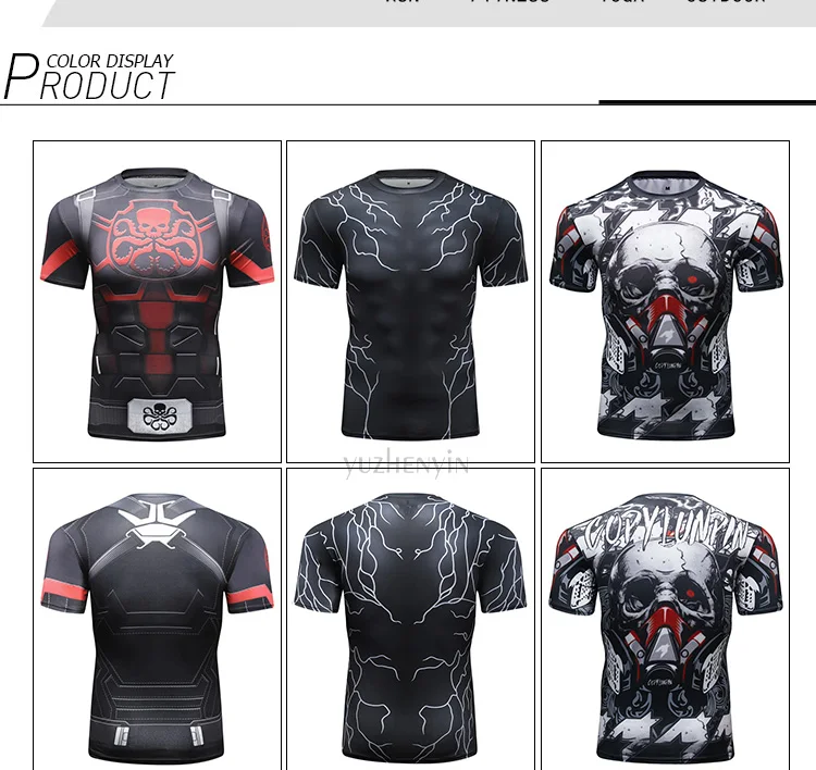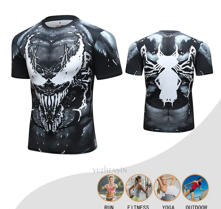 Man Short Sleeve Sport T Shirts Workout 3D Compression Quick Dry Training Men'S Running Gym Fitness Top Rashgard MMA BJJ