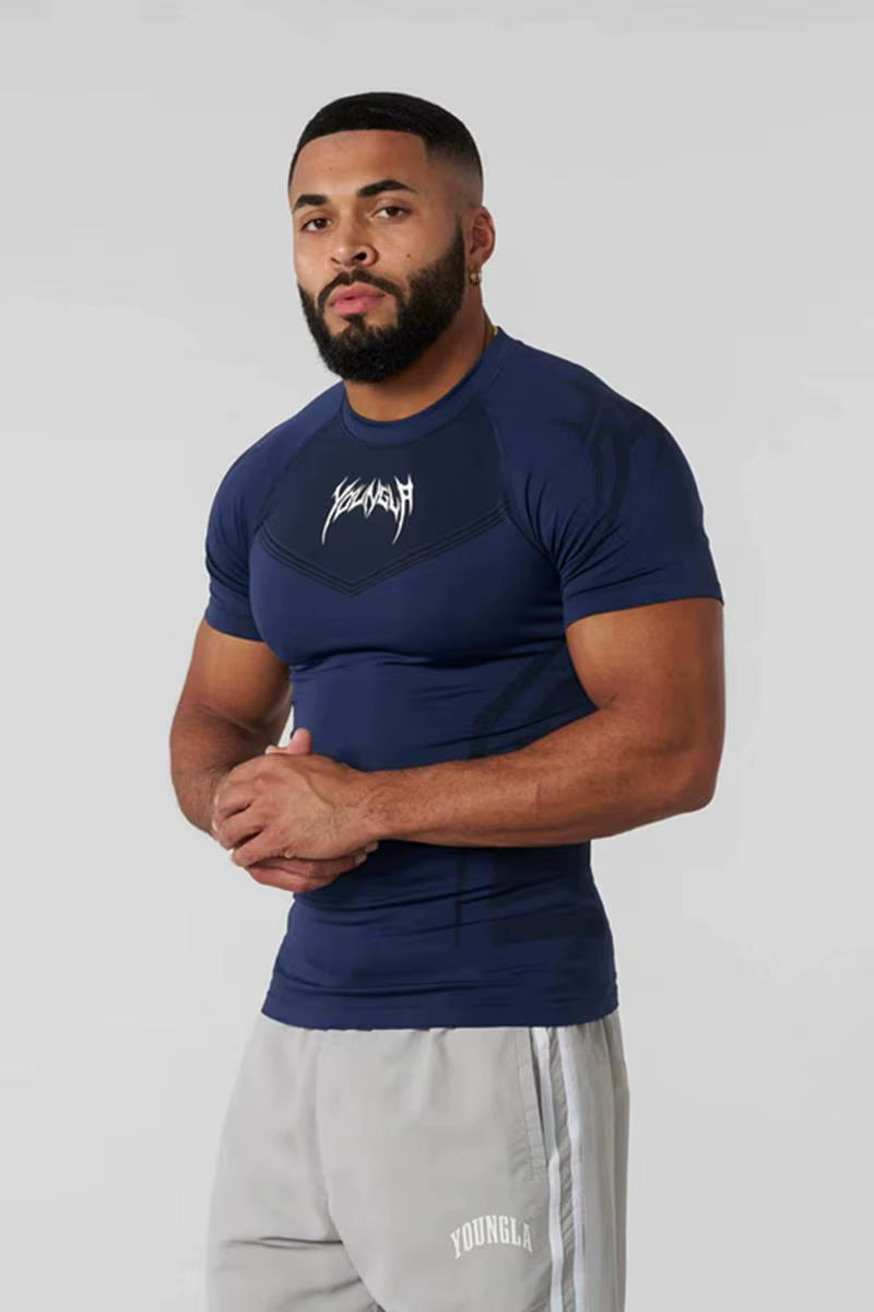 Men Short Sleeve 2025 Spring Autumn New Stylefitness Clothes Quick Drying Breathable Stretch Tight Fitting Clothing T-Shirt