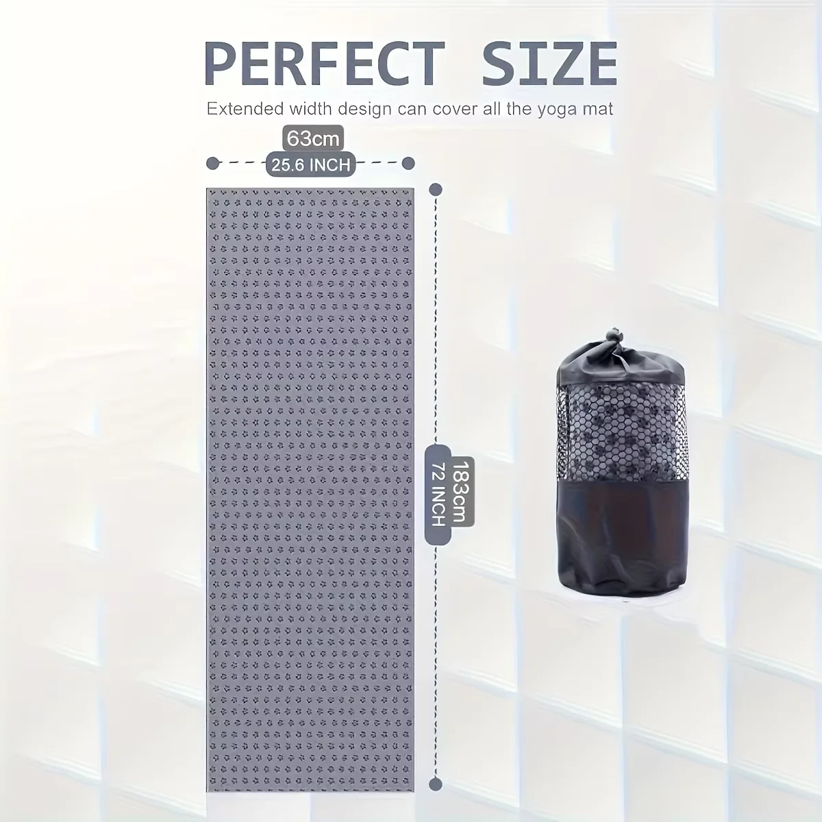 👍 Yoga towel size: 183 x 63 cm Extra long size, suitable for most yoga mats, edge lock flat and sturdy, exquisite and durable, foldable and equipped with mesh pockets for easy storage and carrying